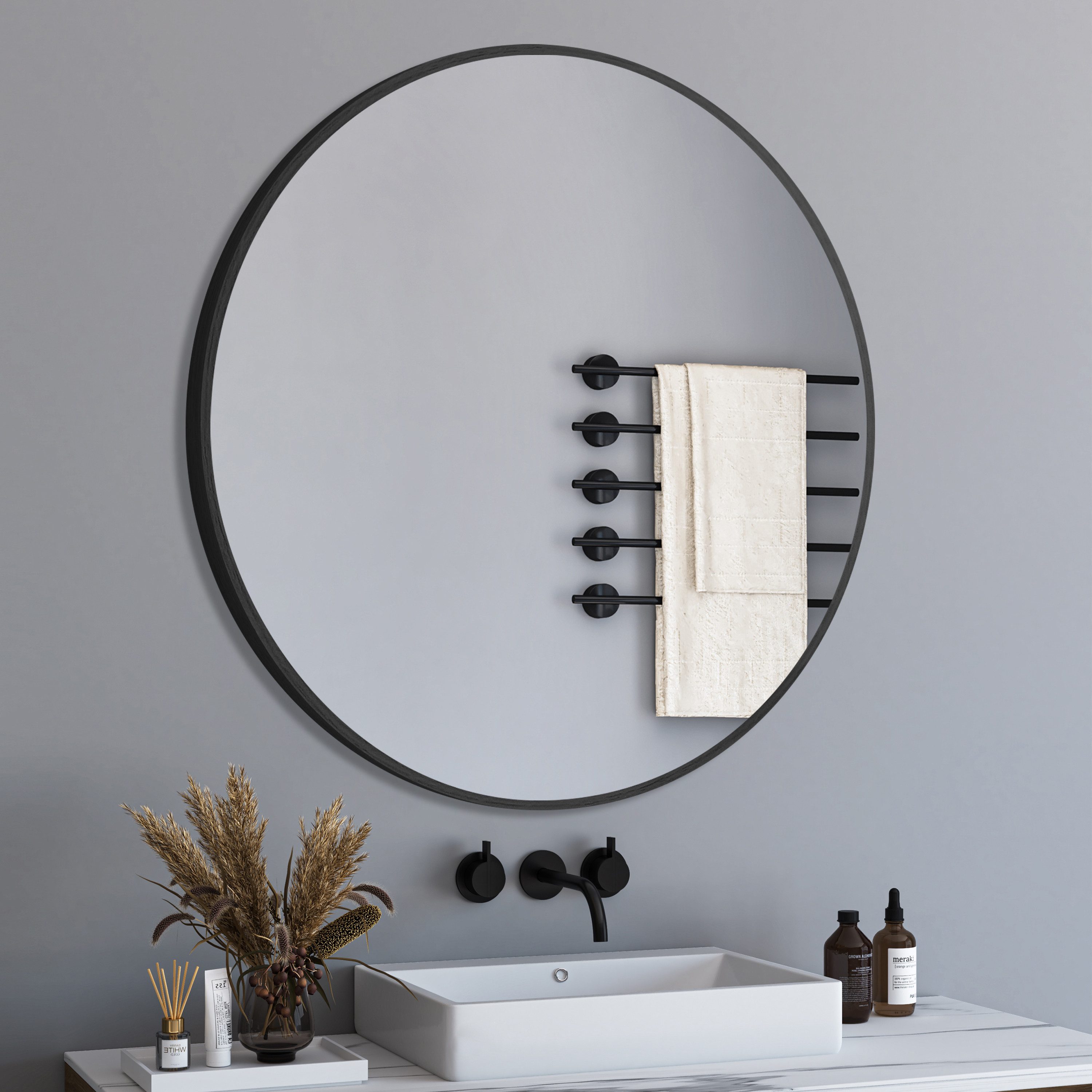 WDWRITTI Design Rundspiegel Schwarz mit Aluminium-Rahmen Ø100cm
