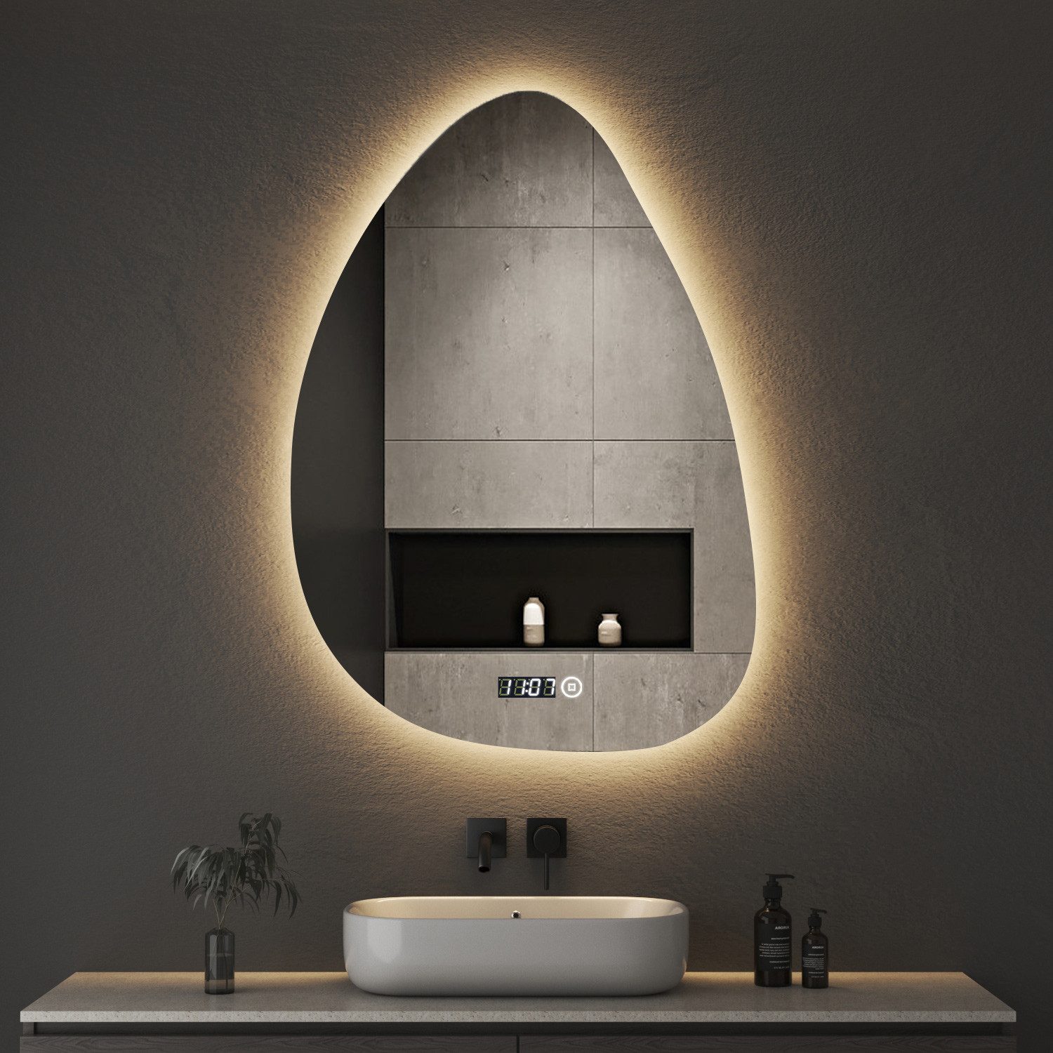 WDWRITTI LED Badspiegel mit Uhr & Speicherfunktion & Touch,Helligkeit/ 3-Lichtfarben einstellbar