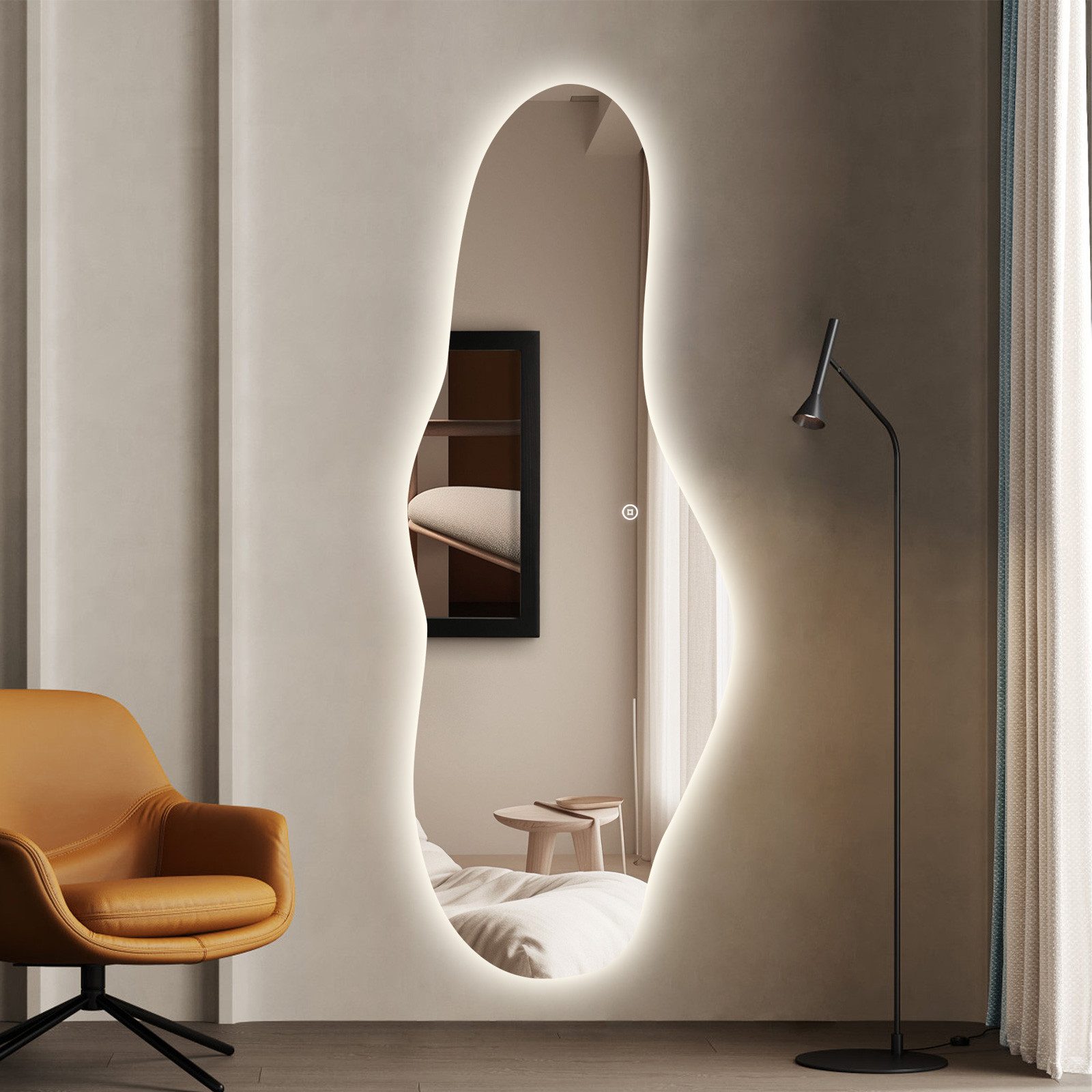 WDWRITTI LED Ganzkörperspiegel mit Speicherfunktion 3Lichtfarben, Dimmbar 165x60cm