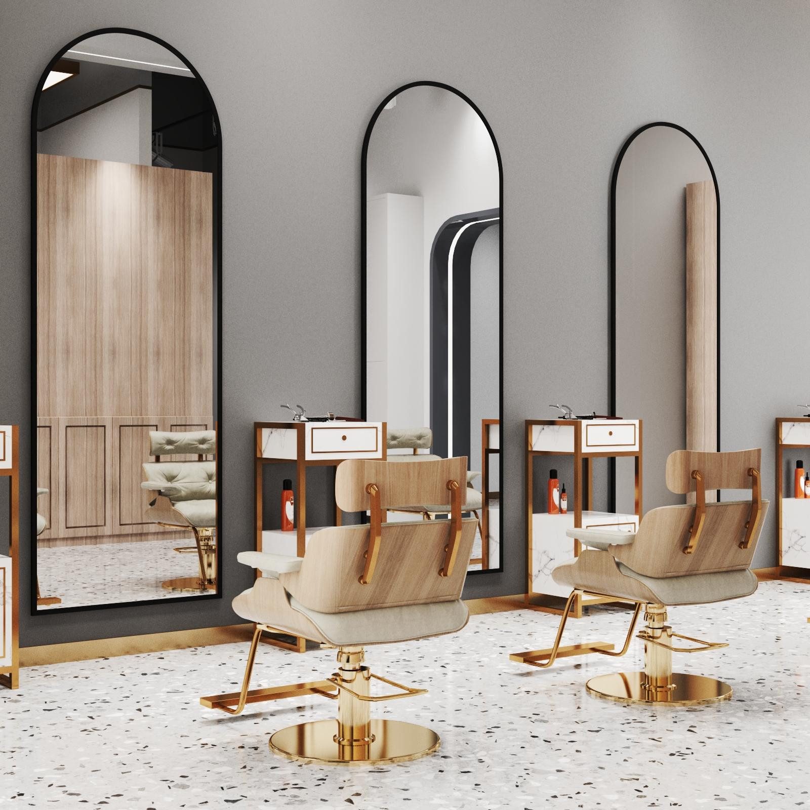 BOROMAL Ganzkörperspiegel mit Aluminium-Rahmen 180x80cm Rundbogen