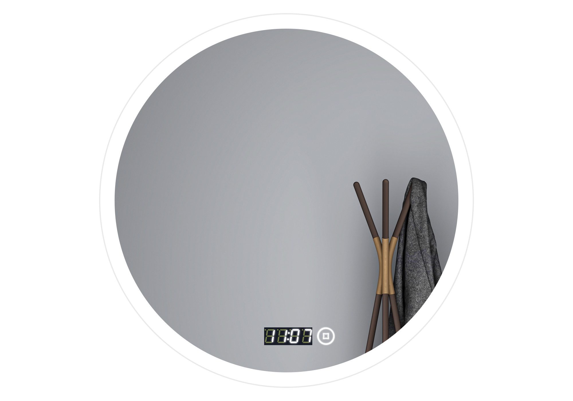 WDWRITTI LED Badspiegel mit Uhr & Speicherfunktion 3Lichtfarben+Helligkeit einstellbar IP44