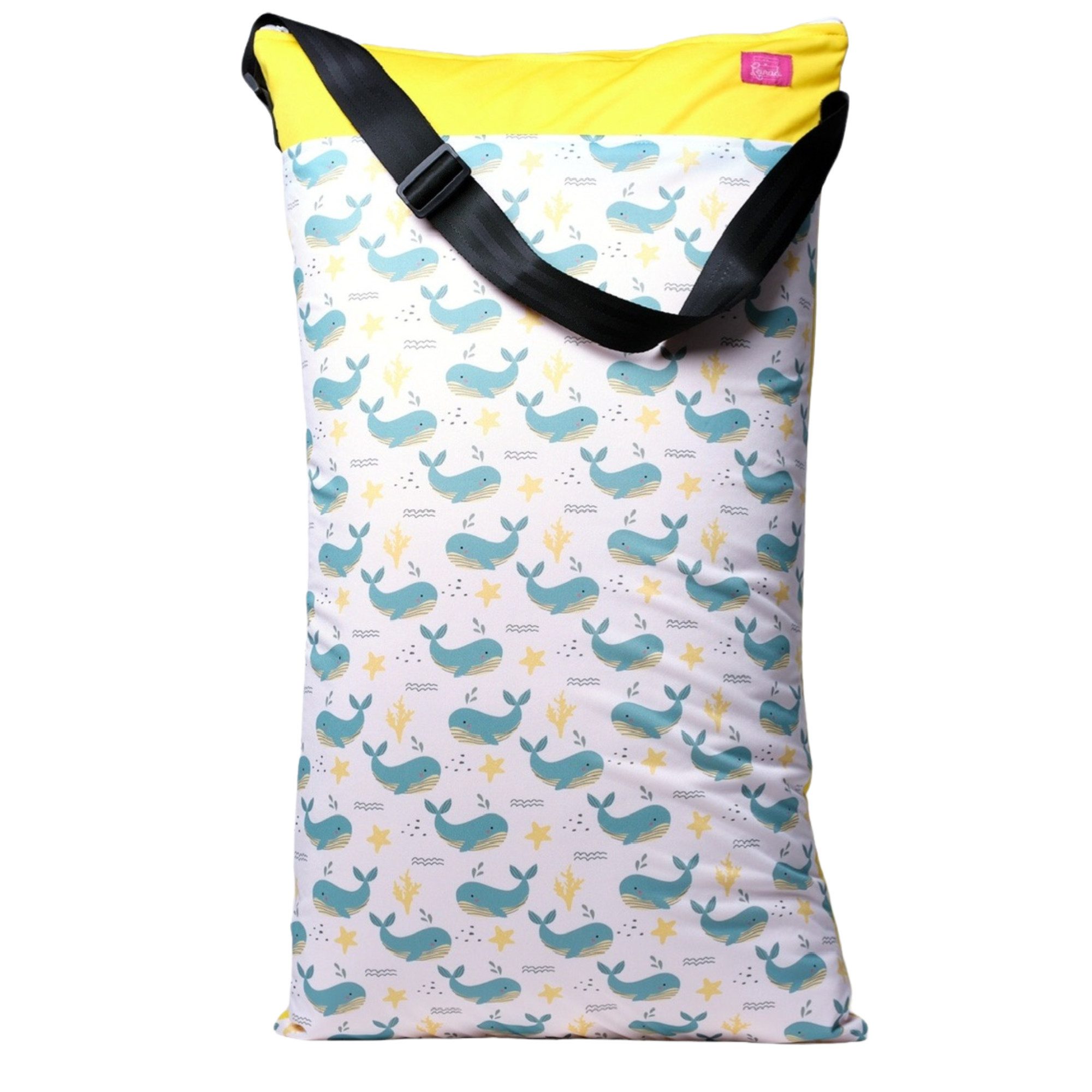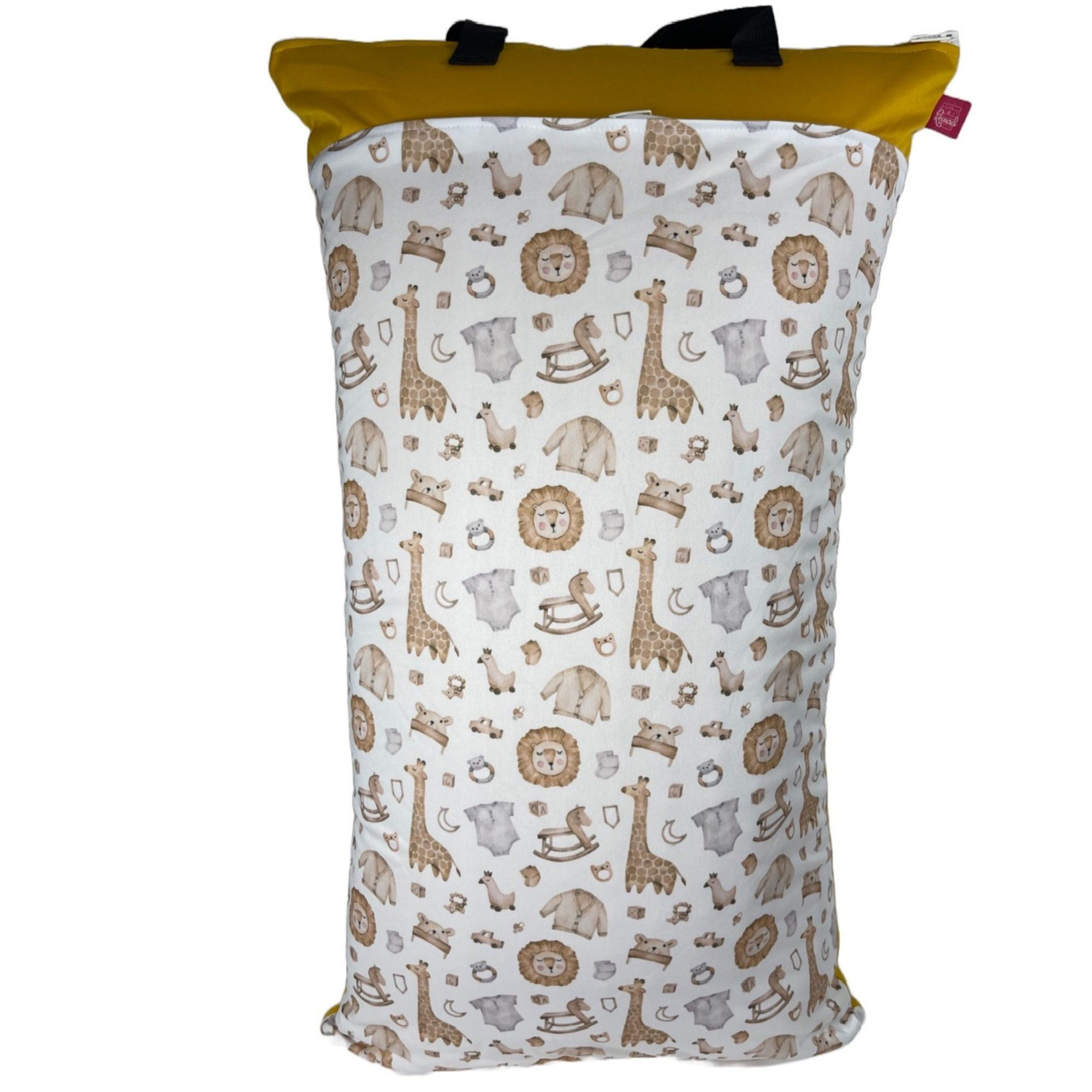 Stoffwindeln, Schmutzwäsche, Badeutensilien uvm. einfach im geräumigen XXL-Wetbag verstauen. Bei Nichtgebrauch lässt sich der Wäschebeutel platzsparend falten und findet so in fast jeder Tasche Platz