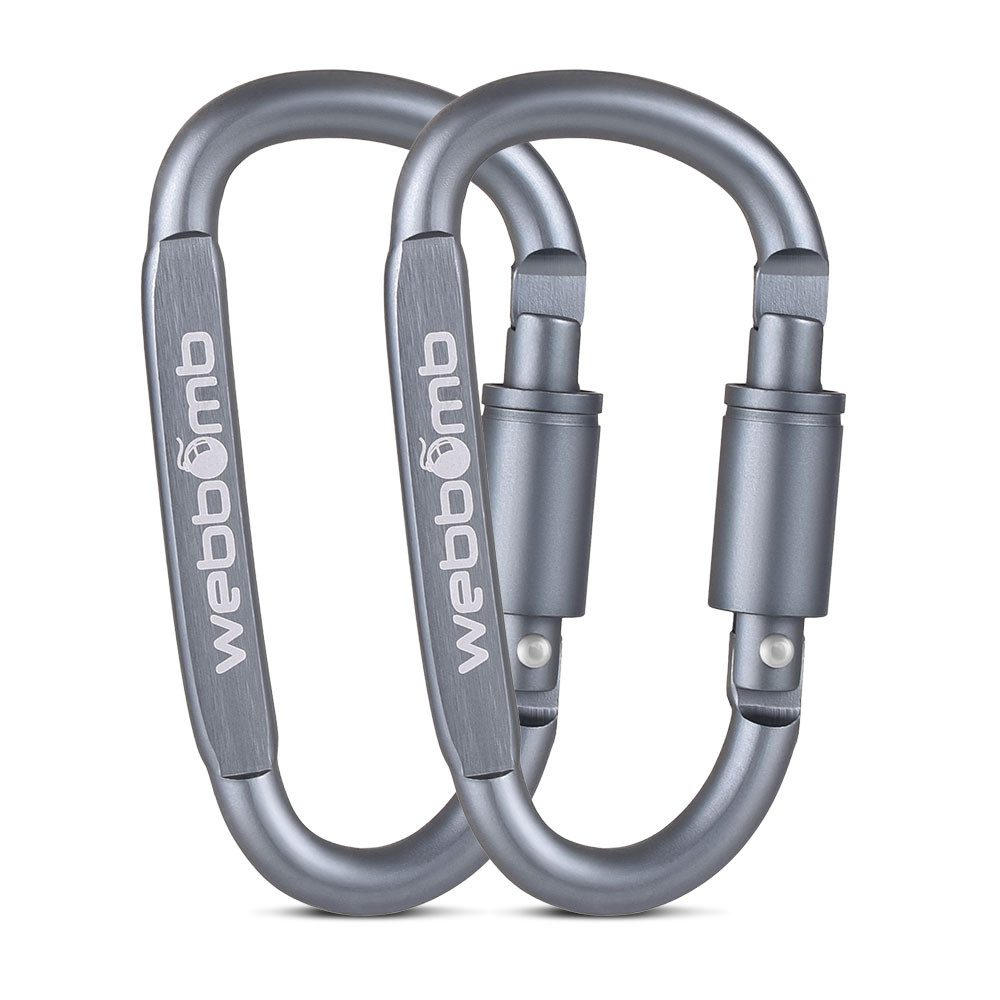 WEBBOMB® 2 Stück stabile Karabiner Haken mit Schraubverschluss für Camping am Kinderwagen beim Wandern Angelsport, Hundesport, Reitsport, Tauchsport uvm. Unser beliebter Material Karabiner für jedes Abenteuer - egal ob beim Trekking, Mountainbiking, Angeln, Wandern, Segeln, Campen, Prepping, beim Gassi Gehen mit Ihrem Hund, als Schlüsselanhänger oder im häuslichen Gebrauch. Sie finden sicher weitere Anwendungsbereiche. Kein versehentliches Öffnen des stabilen Schnappers: Öffnen Sie den kompakten und dennoch federleichten Karabiner mithilfe des präzise gearbeitete Schraubverschluss-System nur dann, wenn Sie es tatsächlich wollen. Sicherer Halt für Ihre Ausrüstung wegen der Verwendung hochwertiger Rohmaterialien. Kletterer weltweit nutzen unsere Karabiner als witterungsbeständigen Materialkarabiner. Sie können ebenso als Befestigungshilfe und nützliches Tool in allen Alltagssituationen genutzt werden, am Kinderwagen, an der Hundeleine oder am Rucksack beim Wandern. Dieser Karabiner ist nicht zur Sicherung von Personen geeignet, sondern dient der Befestigung von Ausrüstungsgegenständen und Material (wichtig: NOT FOR CLIMBING).