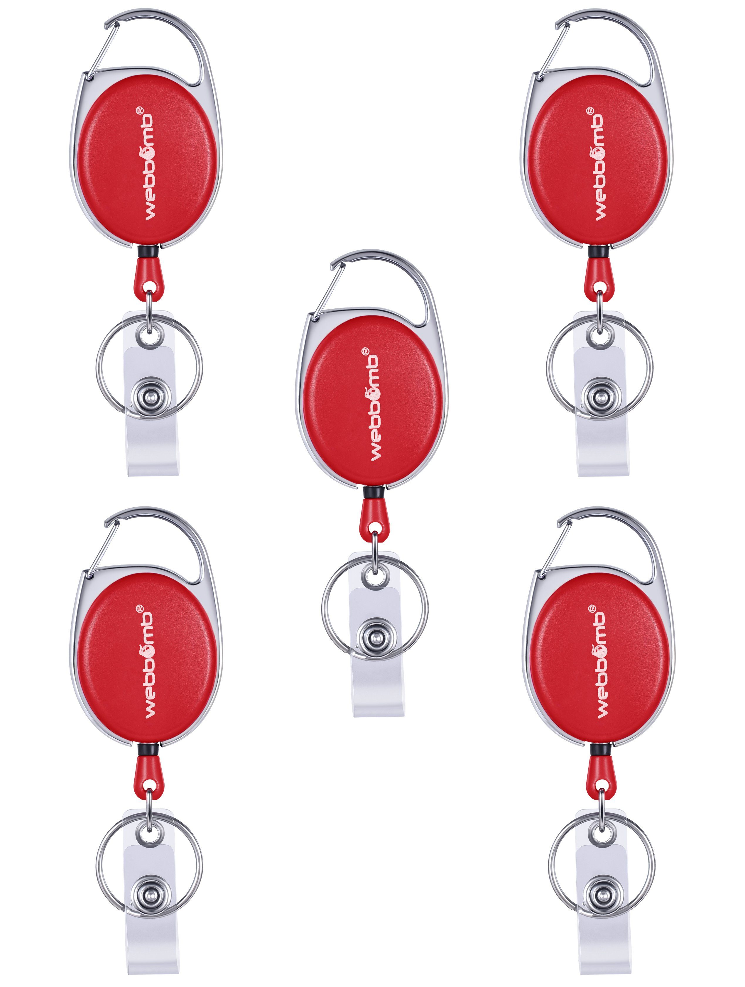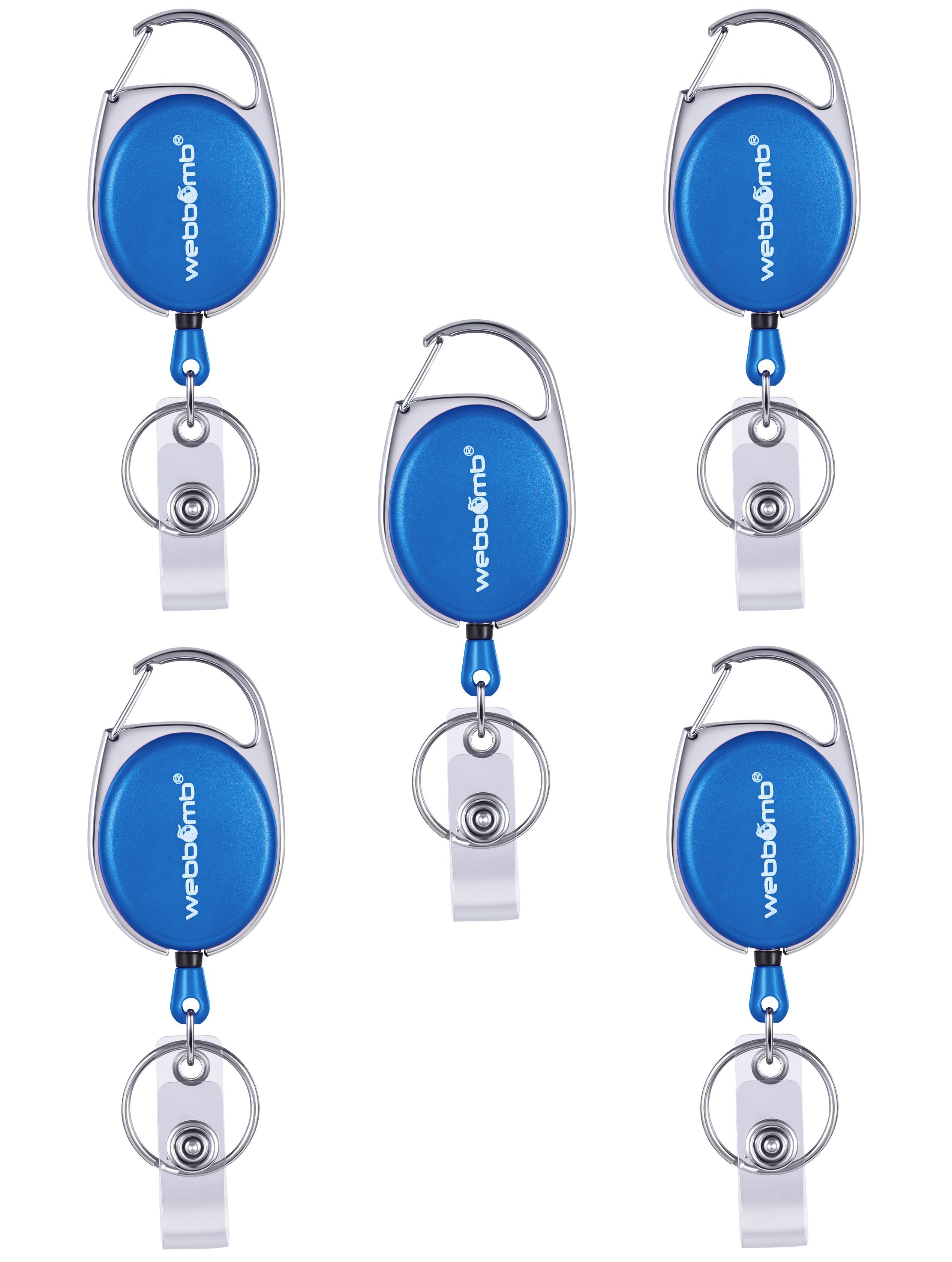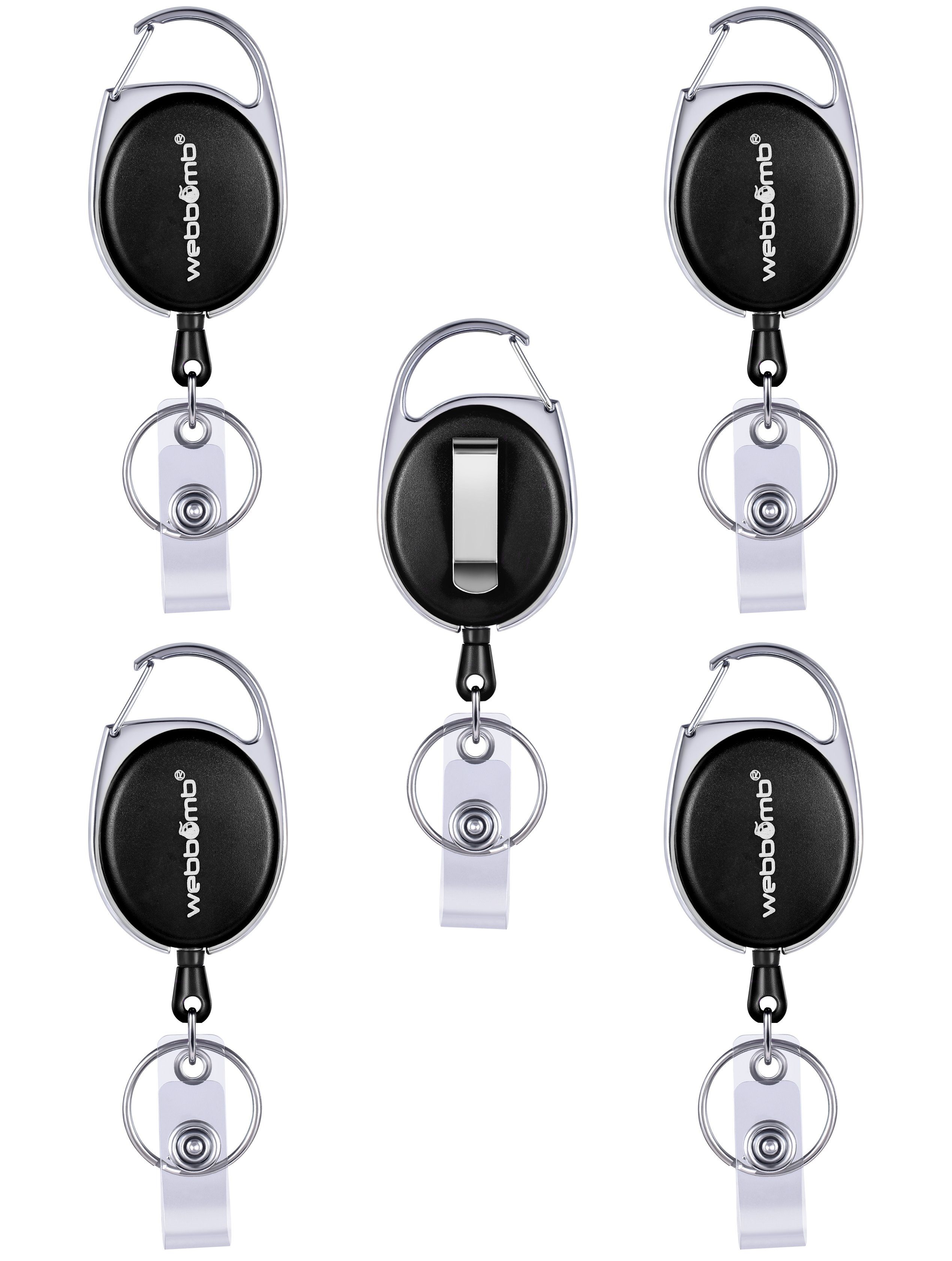 WEBBOMB 5 Stück bunte Ausweishalter mit JoJo bis ca. 65 cm ausziehbar 5 Farben ( lila, weiß, blau, rot und schwarz ) reißfeste Schnur und Gürtelclip + Schlüsselring + Vinylstrap