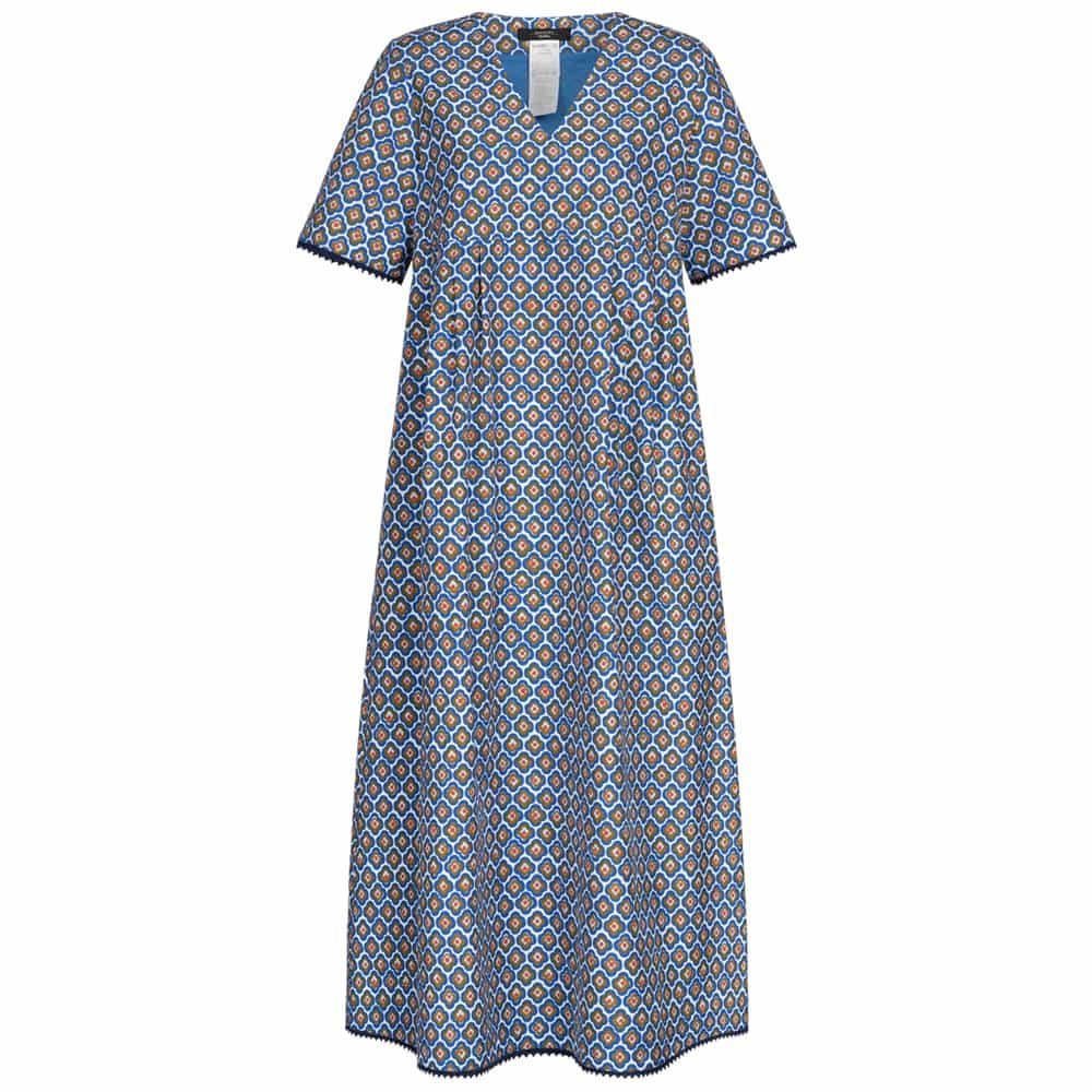 Entdecken Sie das exklusive Baumwollkleid DANZICA von WEEKEND MAX MARA und lassen Sie sich von dem bezaubernden blau-weißen Muster verzaubern. Das wunderschöne Damenkleid ist derzeit im Sale erhältlich und ein absolutes Must-Have für stilbewusste Frauen. Mit seinem eleganten V-Ausschnitt und dem leicht ausgestellten Rock strahlt das Kleid DANZICA zeitlose Eleganz aus und betont gekonnt Ihre feminine Silhouette. Die ungefütterte Verarbeitung sorgt für ein angenehmes Tragegefühl, während das florale Muster einen frischen und verspielten Look verleiht. Praktische, verdeckte Eingrifftaschen bieten Platz für kleine Utensilien und die dekorative Borte an den Saumabschlüssen bieten eine zusätzliche raffinierte Note. Hergestellt aus 100% hochwertiger Baumwolle sorgt es nicht nur ein angenehmes Tragegefühl, sondern besticht auch durch eine luftige und atmungsaktive Qualität. Kombinieren Sie das Kleid DANZICA mit einer leichten Strickjacke und eleganten Sandalen für einen sommerlichen Look oder tragen Sie es mit Jeansjacke und Sneakers für einen lässigen Alltagslook. Dieses gemusterte Kleid ist ein vielseitiges Kleidungsstück, das Sie sowohl zu besonderen Anlässen als auch im Alltag begleiten wird. Ergänzen Sie Ihre exklusive Garderobe mit dem Kleid DANZICA und lassen Sie sich von seiner zeitlosen Schönheit und seinem einzigartigen Stil begeistern.