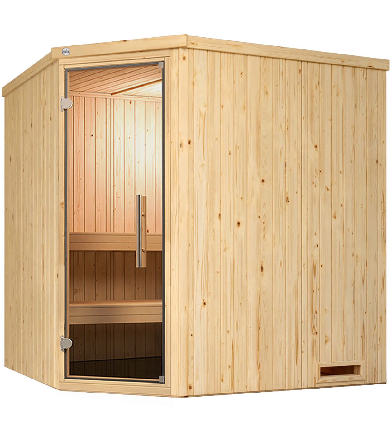 Installationshinweis | Bei Saunen mit Ofen ist der E-Anschluss nur durch eine Elektrofachkraft vorzunehmen. |