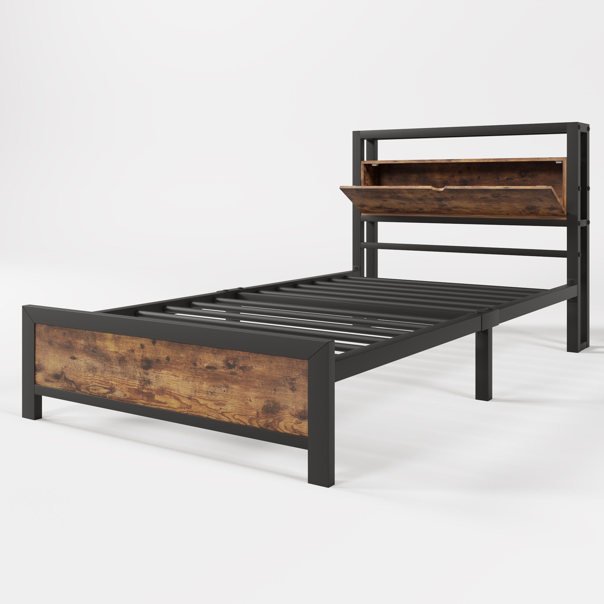Einzigartiges Design:Die Kombination aus Kopfteil und Fußteil im rustikalen Stil mit Retro-Metalllatten schafft ein starkes industrielles / rustikales Flair, das Ihrem Zimmer einen industriellen und einzigartigen Touch verleiht. Das Kopfteil besteht aus einer wasserfesten & kratzfesten Holzplatte.