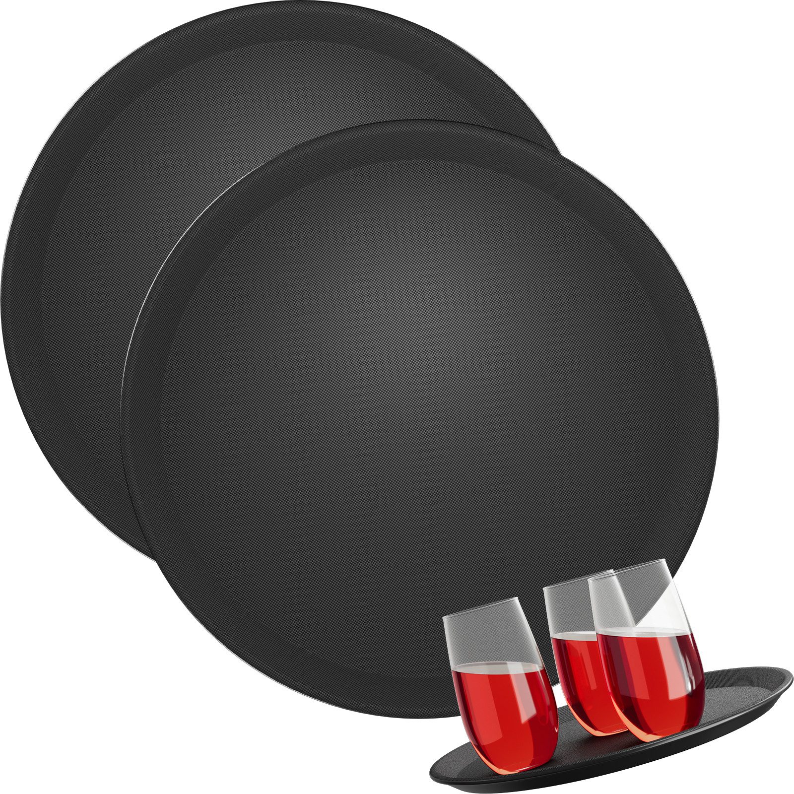 Das schwarze Kellnertablett ist die perfekte Wahl für den professionellen Einsatz in der Gastronomie und ebenso ideal für den Privatgebrauch. Mit einem Durchmesser von 35 cm bietet es ausreichend Platz für Gläser, Flaschen und Geschirr, während die Randhöhe von 1,8 cm für zusätzlichen Halt sorgt und das Abrutschen verhindert.