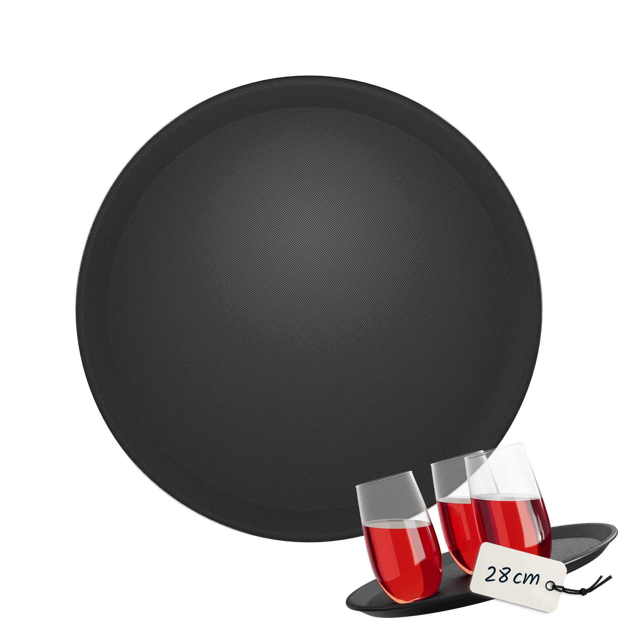 Mit seiner praktischen Размер ist das runde Kellnertablett 28cm handlich und vielseitig einsetzbar für Gläser, Flaschen und Geschirr, während die Randhöhe von 1,8 cm für zusätzlichen Halt sorgt und das Abrutschen verhindert. Die strukturierte Oberfläche des Antirutsch Tablett sorgt für sicheren Halt von Gläsern und Geschirr – selbst bei voller Beladung bleibt alles an Ort und Stelle. Es eignet sich sowohl als Kerzenteller, Deko Schale oder auch als modernes kleines Tablett für Snacks und Drinks.