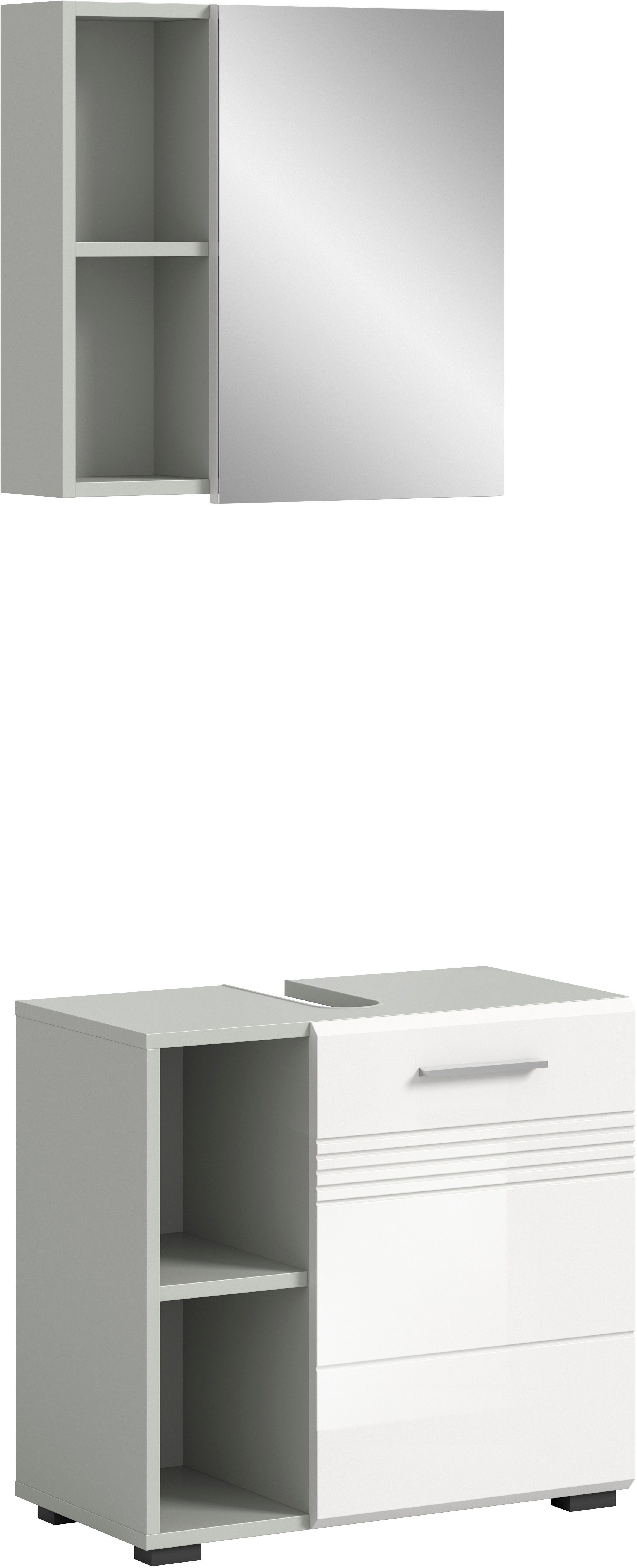 Set beinhaltet | 1x Waschbeckenunterschrank, 1x Spiegelschrank |