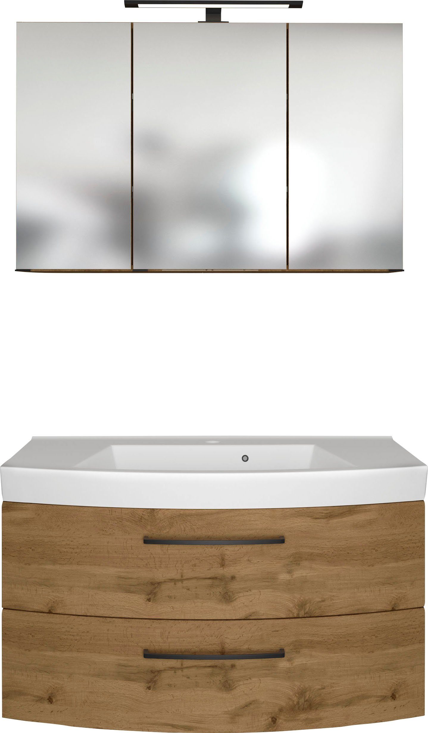 Set beinhaltet | Spiegelschrank und Waschtisch mit Mineralgussbecken |