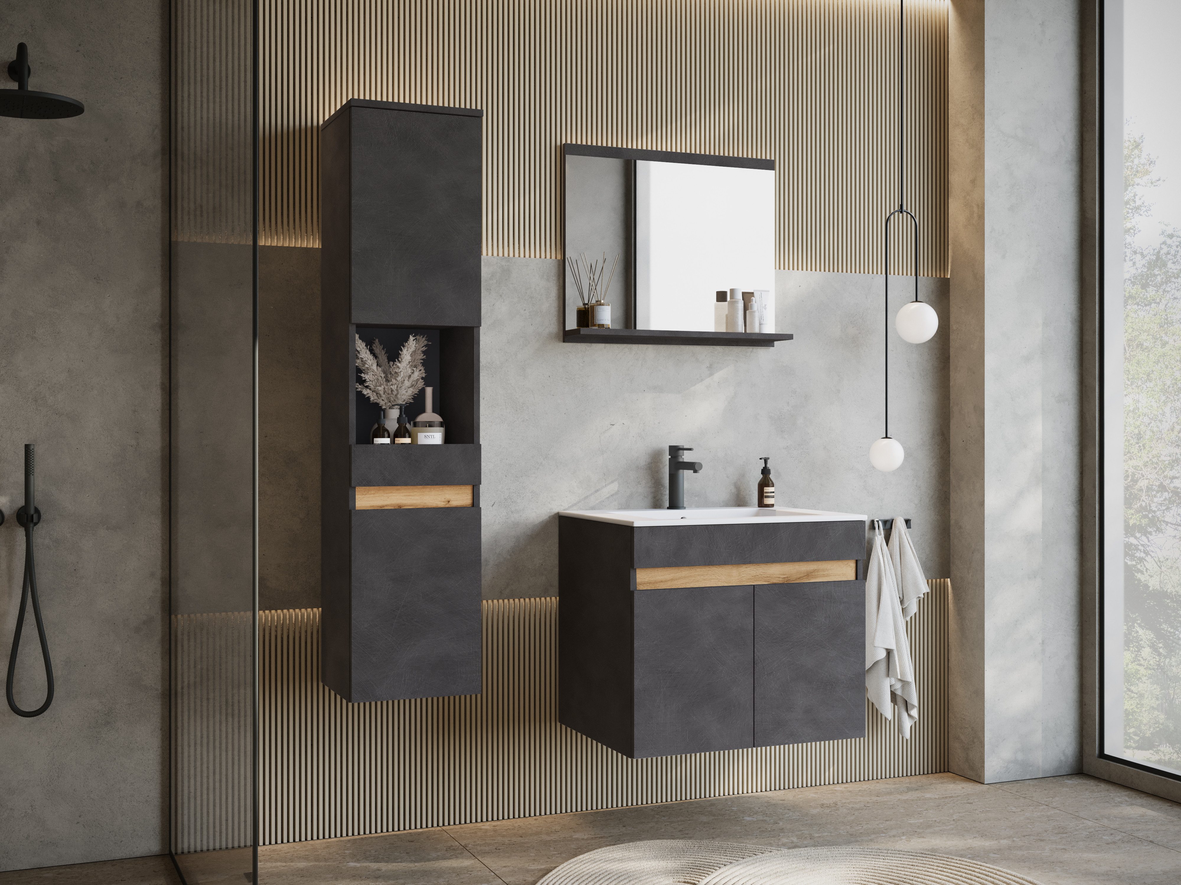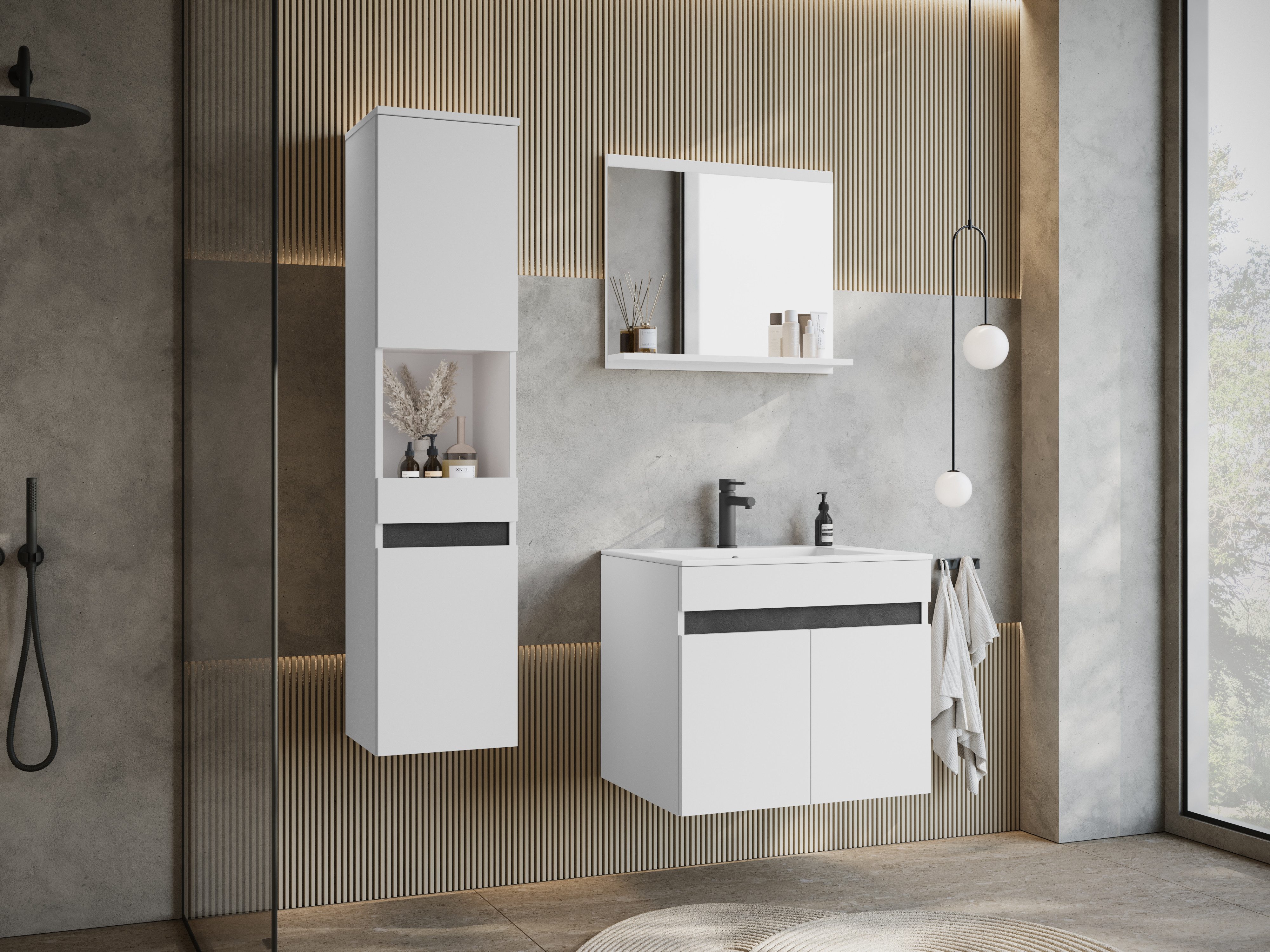 Set beinhaltet | 1 Waschtisch, 1 Hängeschrank, 1 Spiegel mit Ablage |