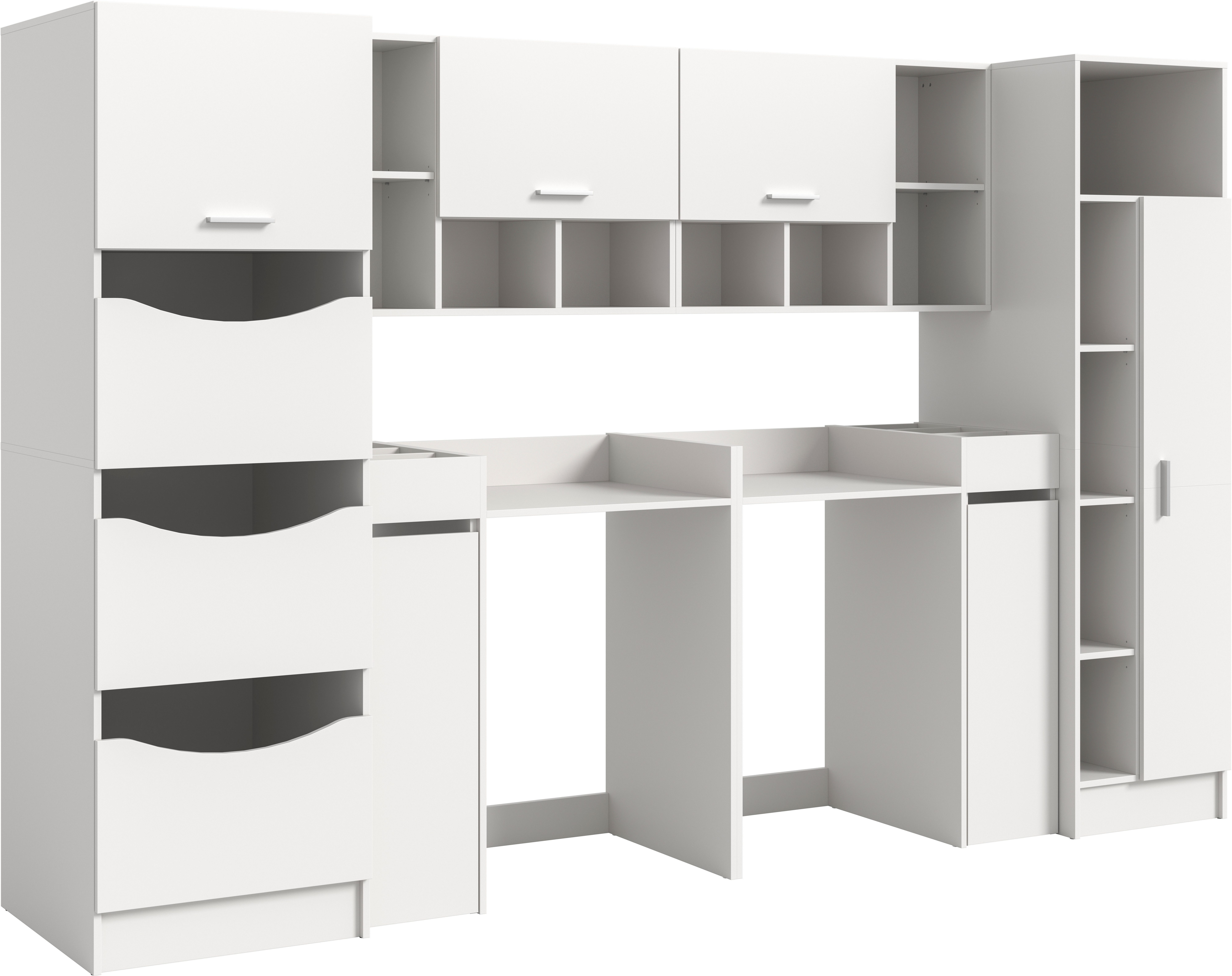 Lieferumfang | 1 Universalschhrank 1 Wäscheschrank 2 Anstellregale 2 Hängeschränke 2 Waschmaschinenumbauschränke |