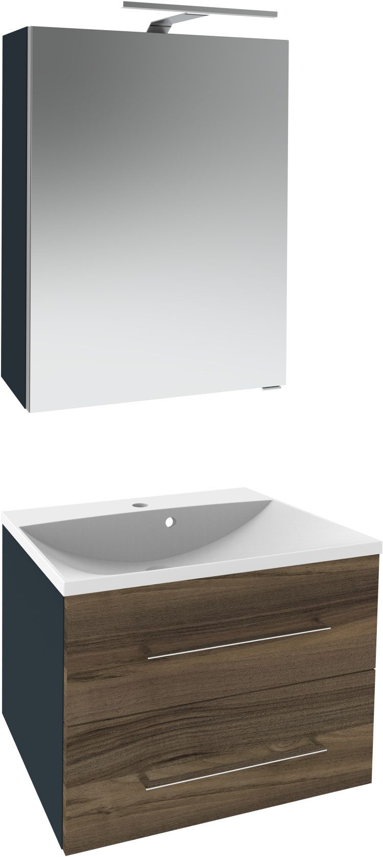 Set beinhaltet | Spiegelschrank, Gussmarmorbecken, Waschtischunterbau |