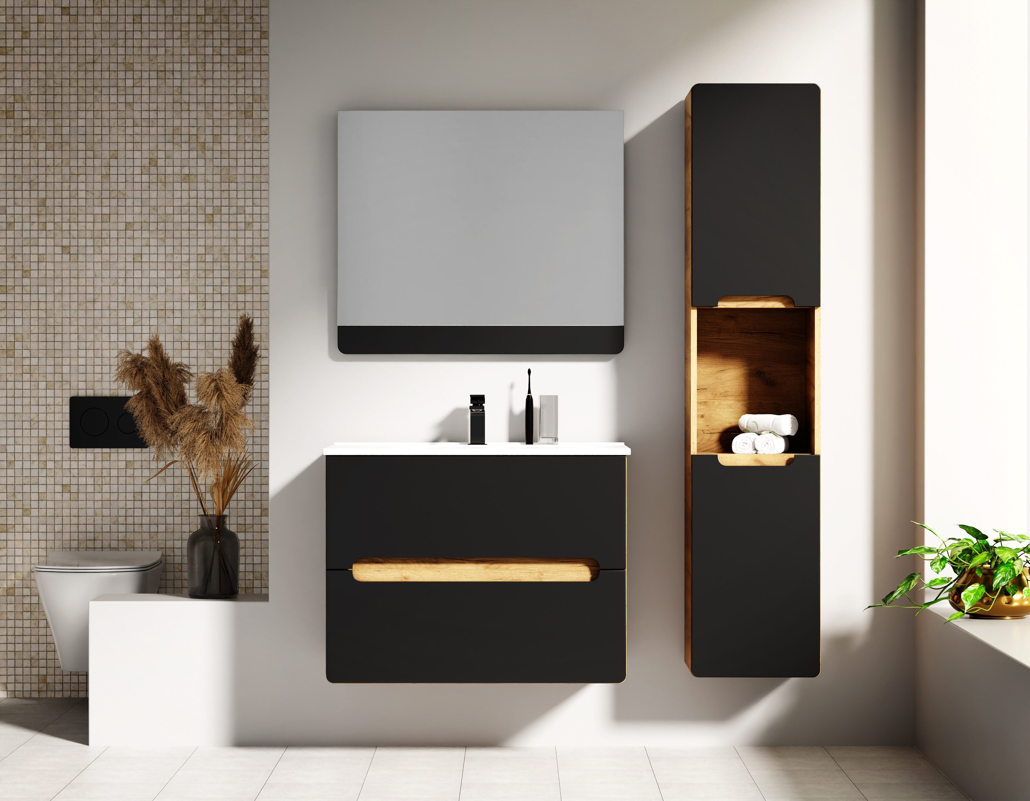 Mit diesem Hängeschrank »Lupo, 2 Einlegeböden und 1 offenes Fach, Soft-Close« von welltime nutzt du auch die Wände deines Badezimmers und gewinnst wertvollen Stauraum für Kosmetik oder Handtücher. Der Schrank wurde aus einer stabilen MDF-Platte gebaut und ist damit beständig gegen Luftfeuchtigkeit. Das Produkt wurde in Europa gefertigt. Dank der Aufbauanleitung kannst du die Montage selbst vornehmen.