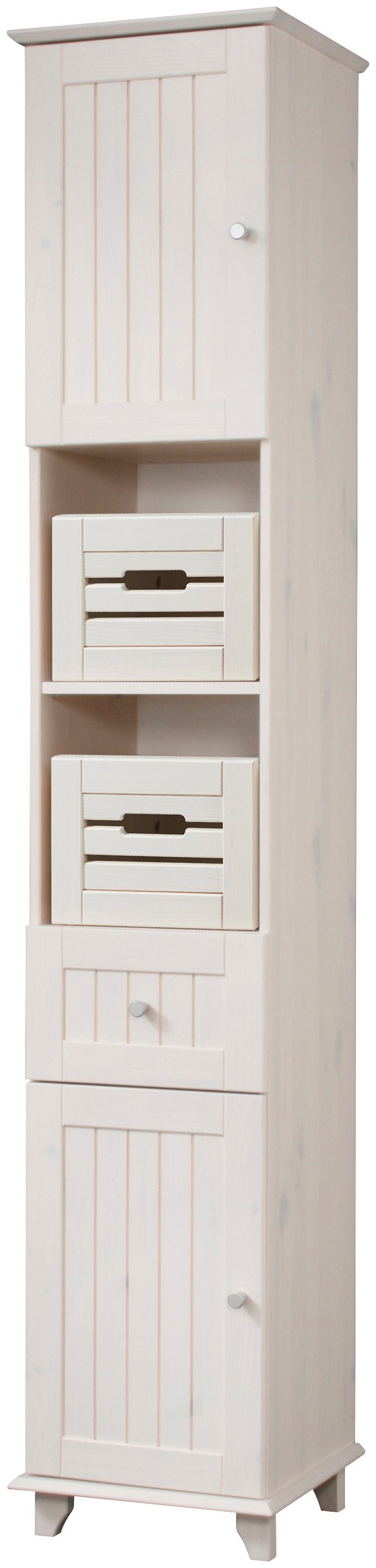 Der schönste Trend heißt Landhausstil! Das Badmöbelprogramm »Venezia Landhaus« aus massivem Kiefernholz verleiht jedem Badezimmer eine tolle klassische Note. Ob stylish in Weiß/Grau, natürlich in gelaugt/geölt, edel ganz in Weiß oder in hübschen Farbkombinationen, die Badmöbel »Venezia« sorgen im Badezimmer für behagliche Wohnlichkeit.