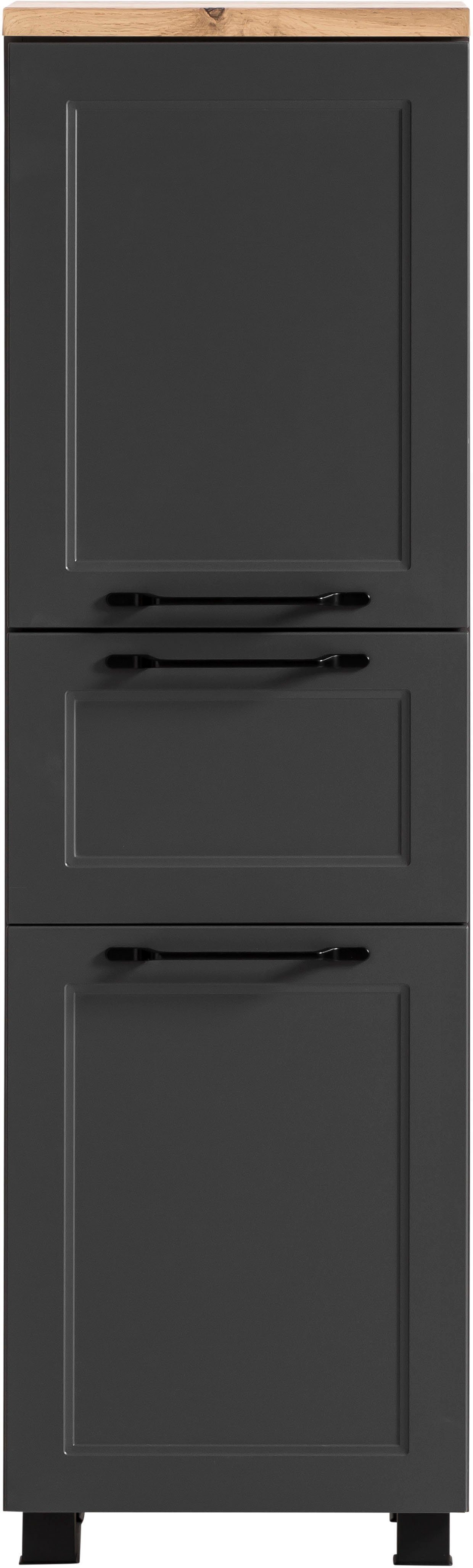 Der stabile Holzwerkstoff, aus dem dieser Schrank besteht, macht das Möbelstück besonders langlebig und hat die Eigenschaft, dass es sich nicht verzieht. Die modernen Bügelgriffe aus Metall sind stabil und nutzen sich daher nicht so schnell ab. Das Herstellungsland Deutschland ist für seine gute Qualität bekannt. Der Midischrank lässt sich dank der dazugehörigen Anleitung unkompliziert montieren.