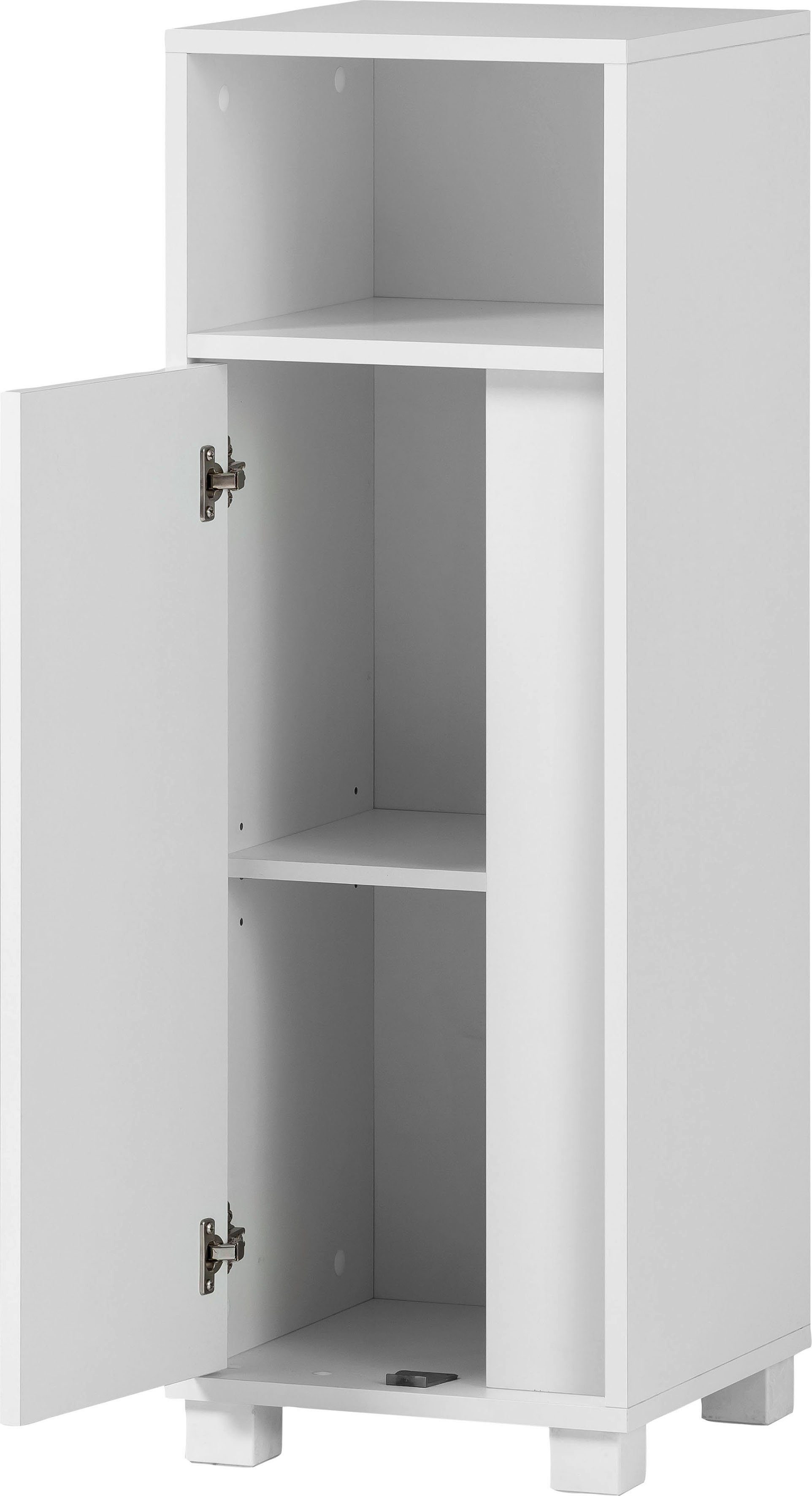 Der Unterschrank »Dex« von welltime ist eine ebenso schicke wie smarte Lösung für mehr Stauraum zuhause. Die Öffnungsrichtung kannst du nach Belieben festlegen, da der Türanschlag sowohl rechts als auch links angebracht werden kann. Die Einlegeböden sind variabel einsetzbar. So kannst du selbst über die Höhe der einzelnen Fächer bestimmen.