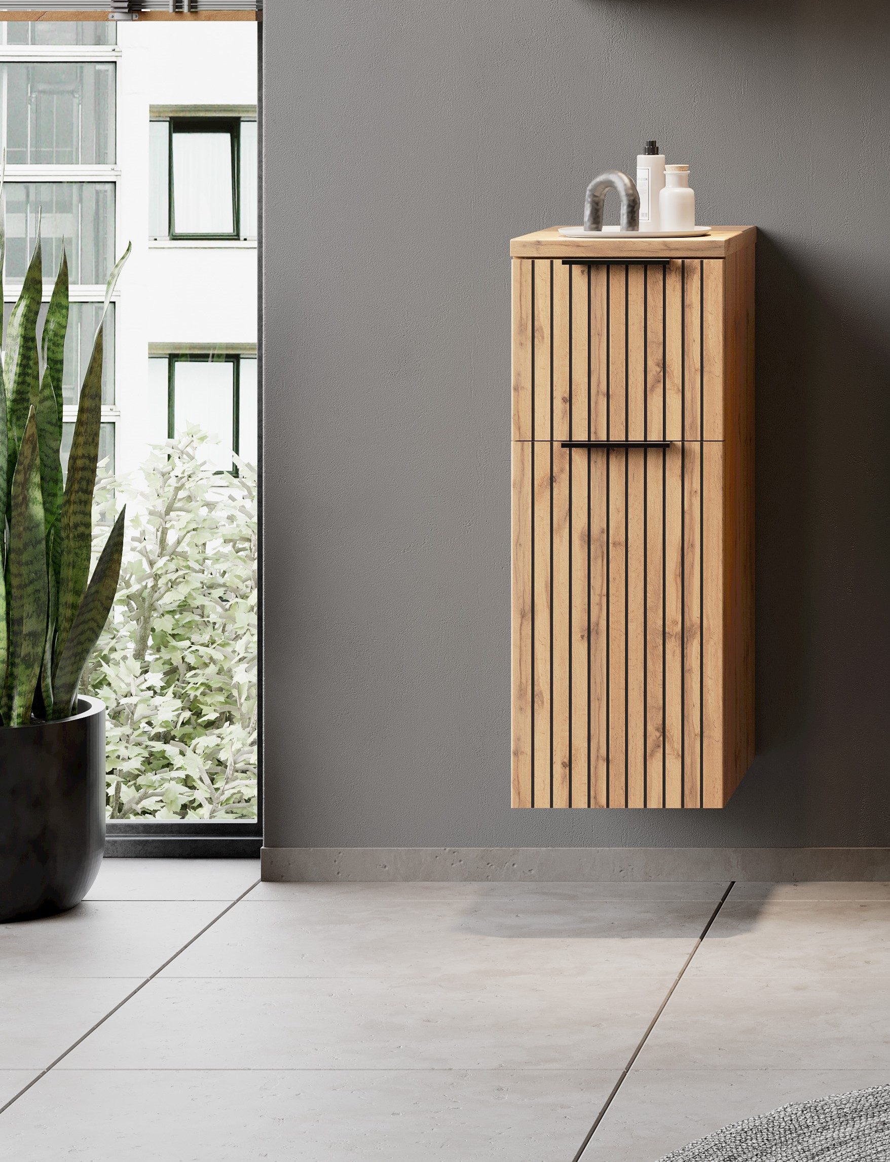 Der Unterschrank von welltime ist eine ebenso schicke wie smarte Lösung für mehr Stauraum zuhause. Die Öffnungsrichtung kannst du nach Belieben festlegen, da der Türanschlag sowohl rechts als auch links angebracht werden kann. Die Einlegeböden sind variabel einsetzbar. So kannst du selbst über die Höhe der einzelnen Fächer bestimmen.