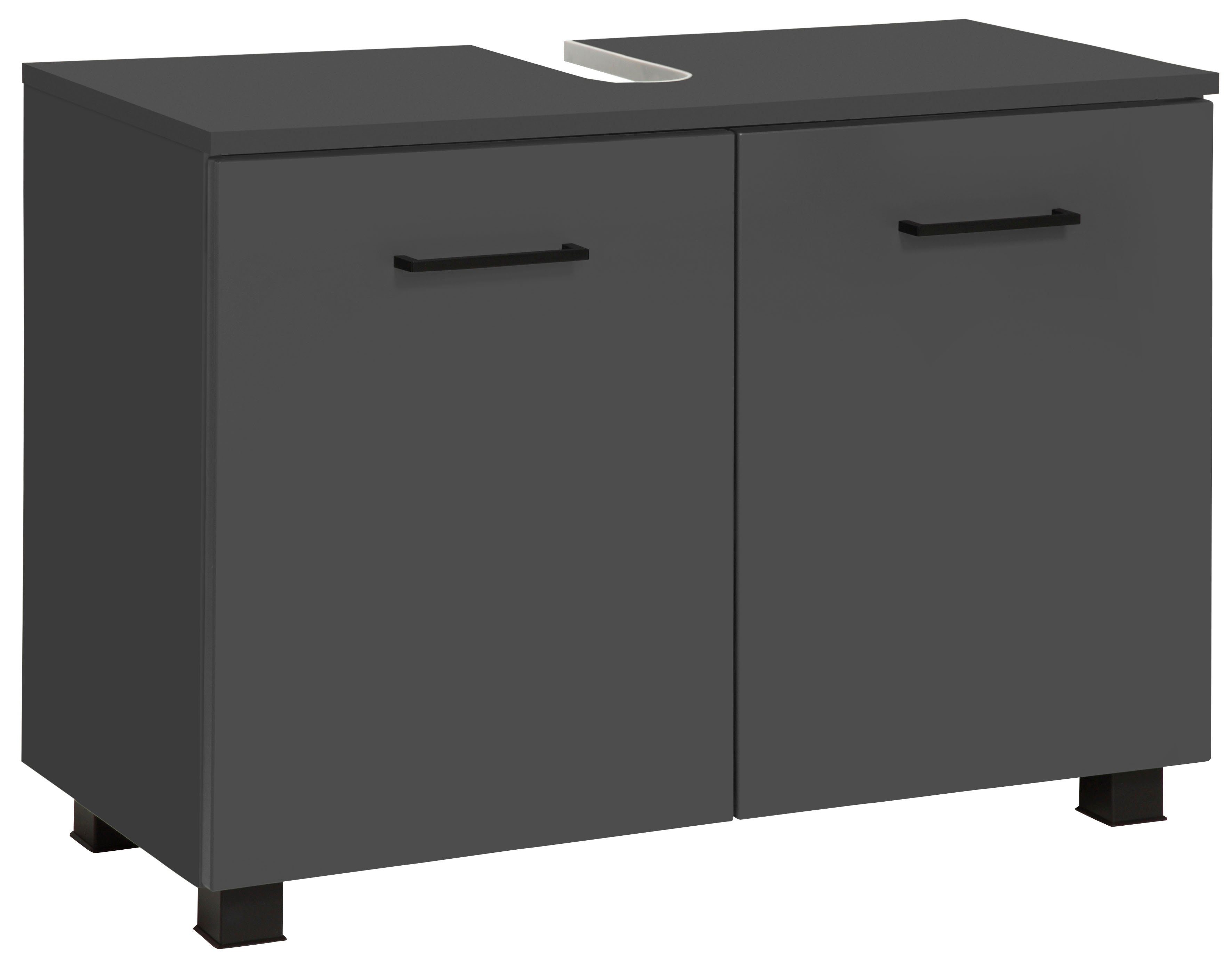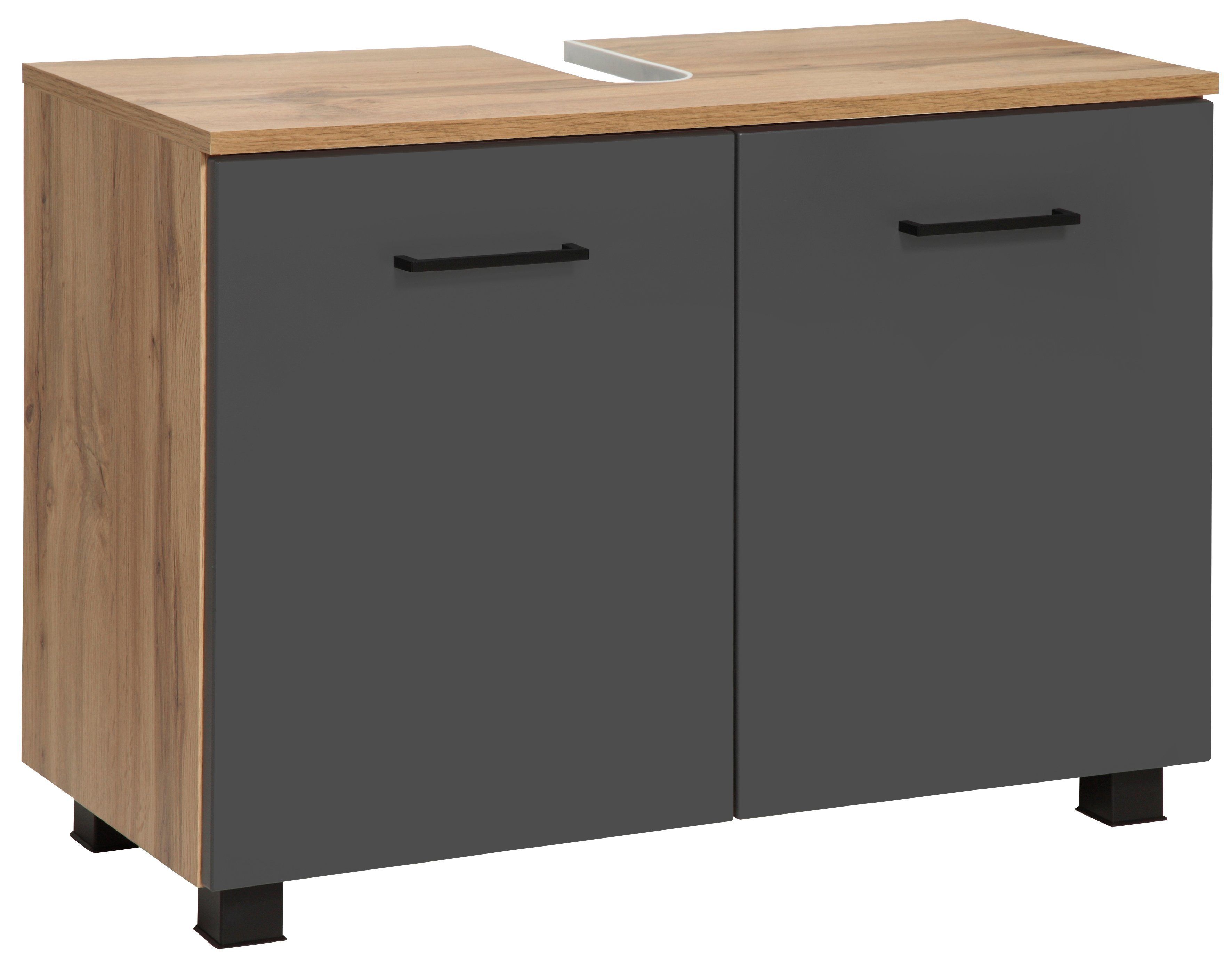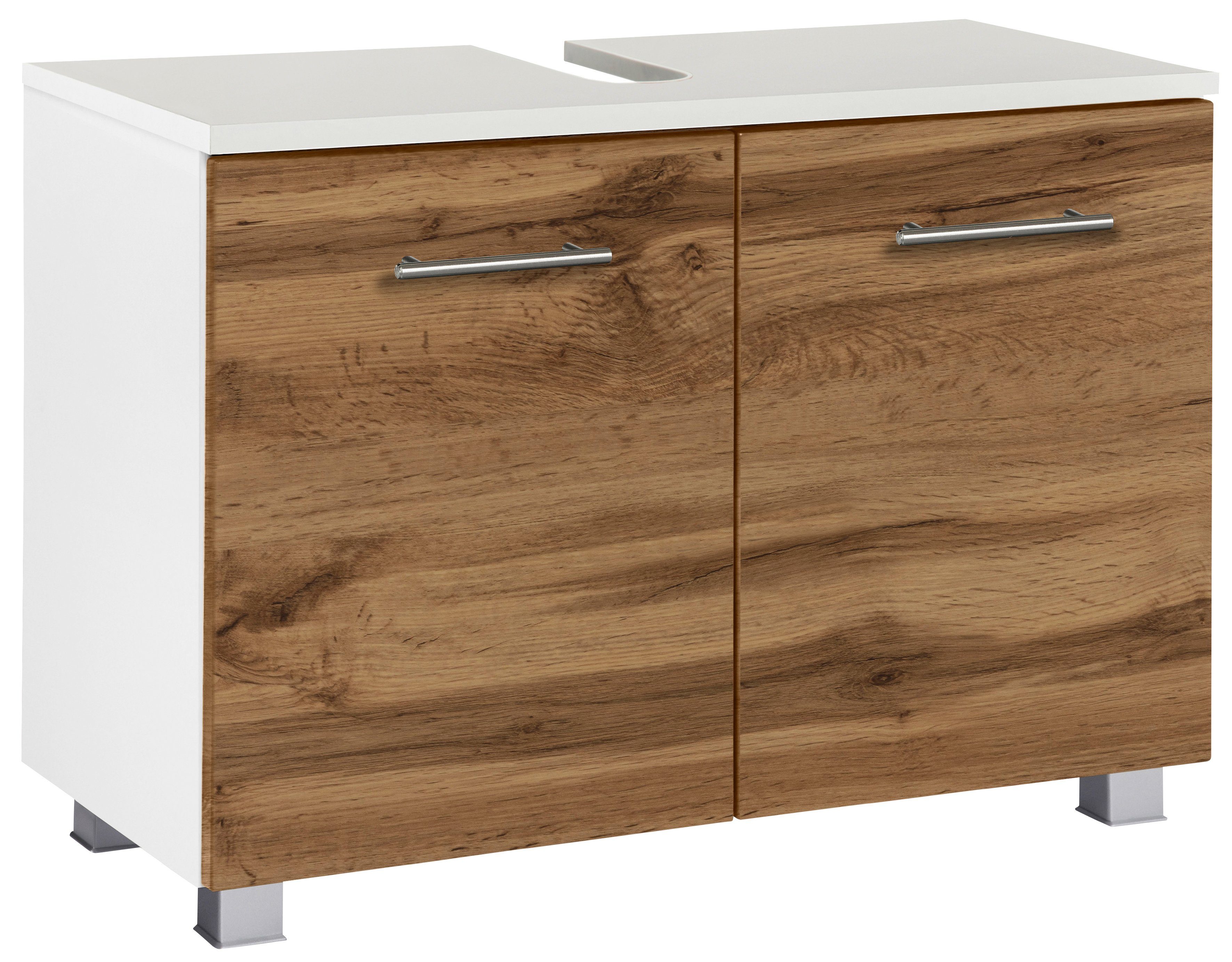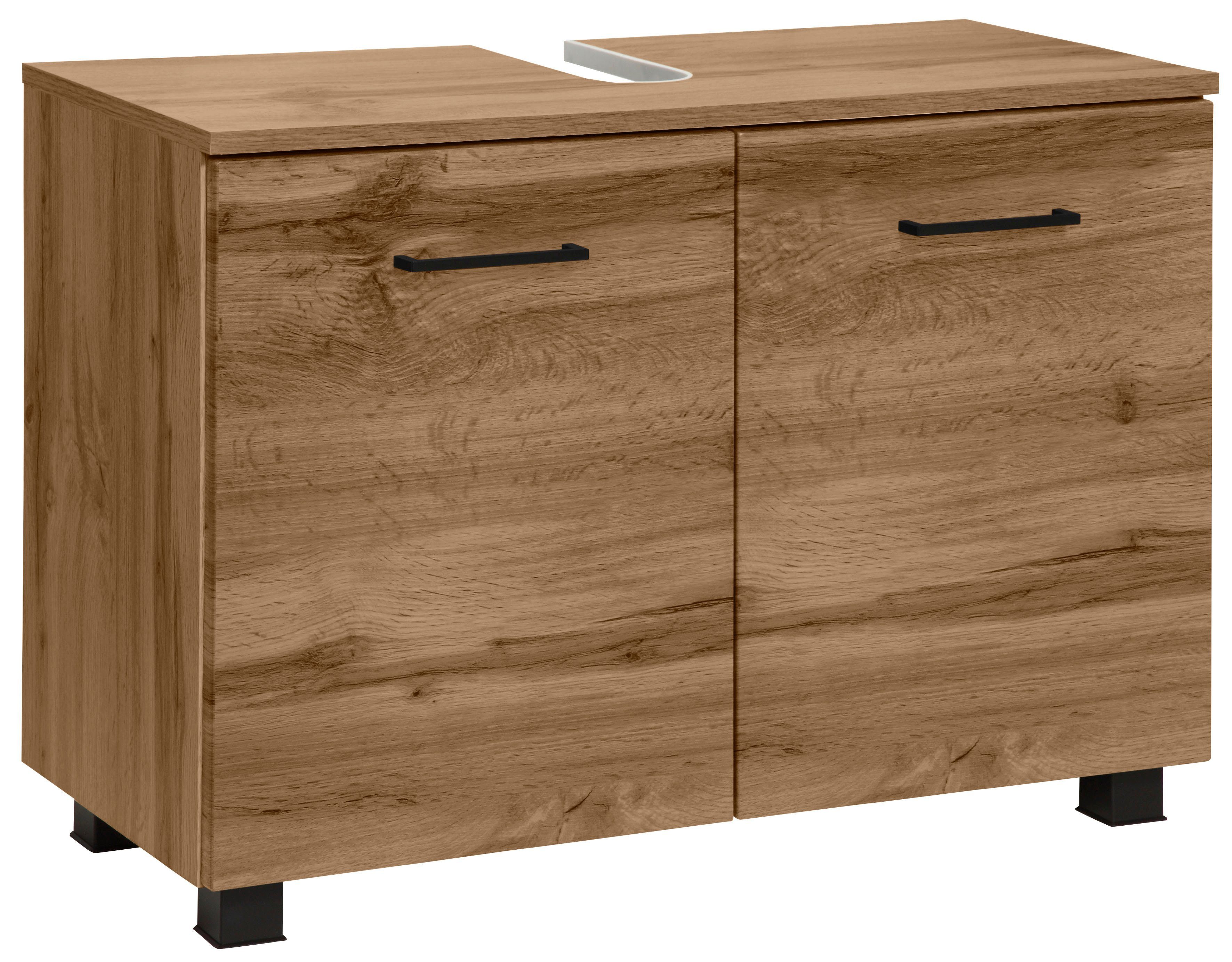 So wie der Glockenturm von Trento mit Ecken und Kanten markanter Mittelpunkt des norditalienischen Städtchens ist, zieht auch die gleichnamige Badmöbelserie mit klaren Formen und einem reinen Design die Blicke auf sich. Der Waschbeckenunterschrank »Trento« ist für stehende und hängende Montage geeignet und bietet hinter seinen zwei Türen viel Stauraum für Putzutensilien & Co. Die Breite des Waschbeckenunterschranks beträgt 80 cm.