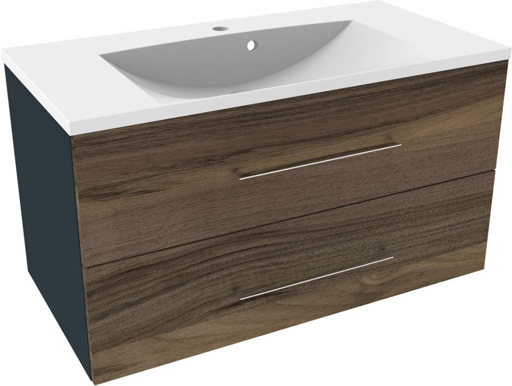 Farbe | Korpus Anthrazit Matt, Front Optik Nussbaum |