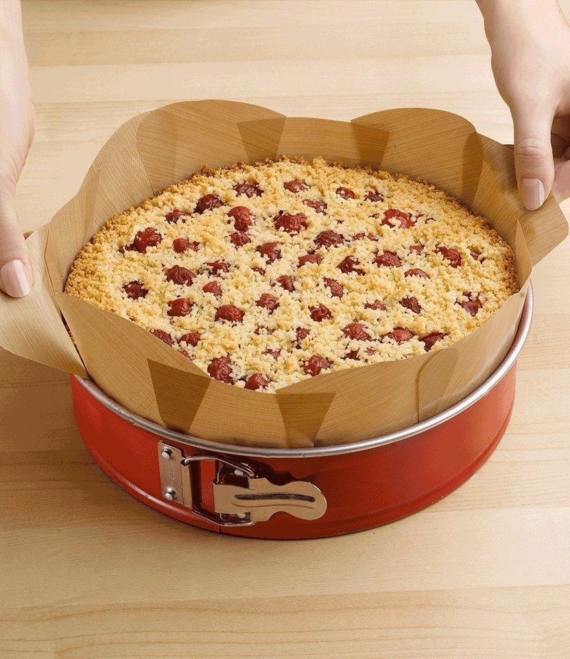 Der Zuschnitt eignet sich für runde Backformen bis Ø 26 cm.