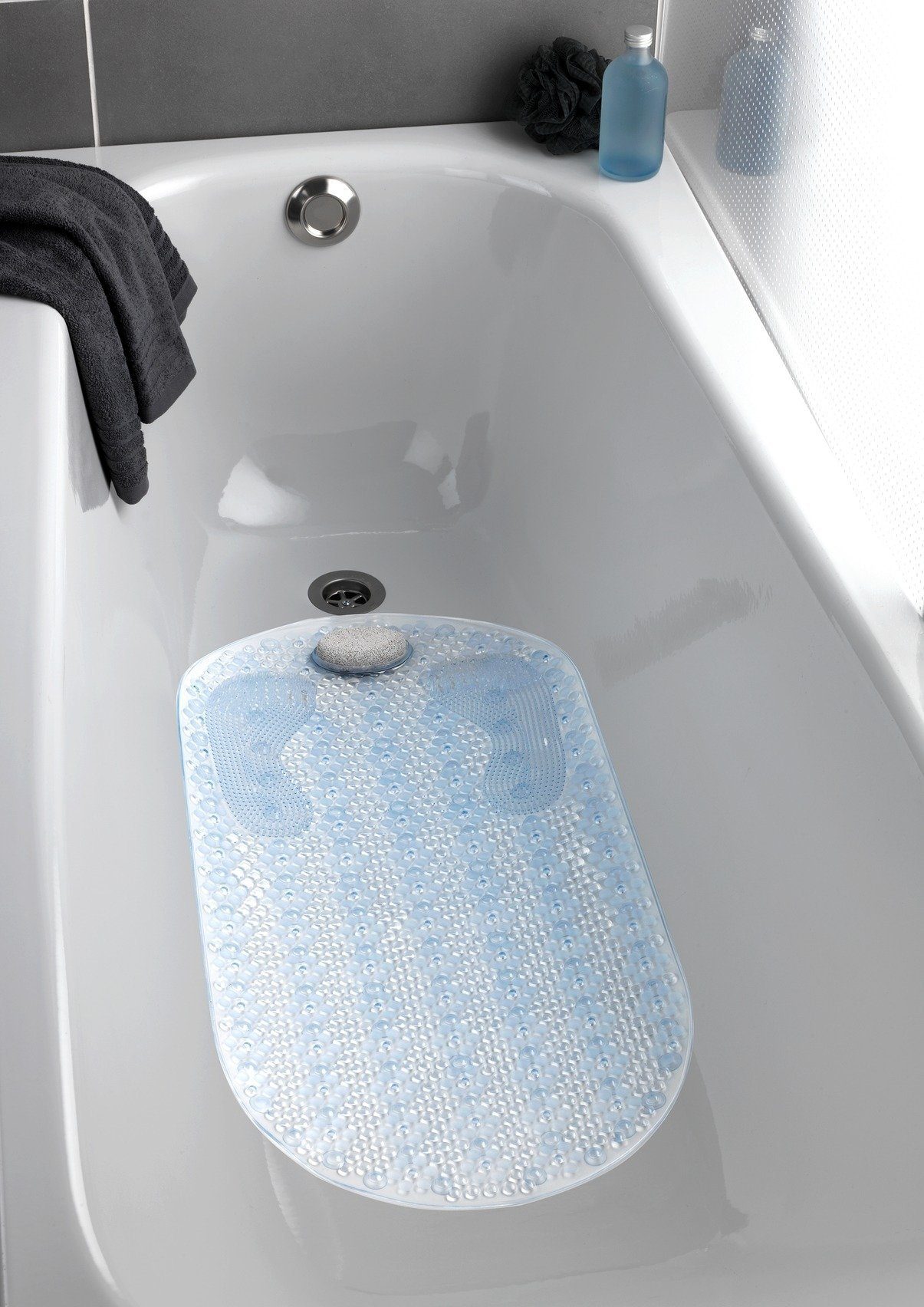 Die rechteckige Badematte in ihrem Design verbirgt eine integrierte Fußbürste mit Bimsstein und Massagebereich für einfache Fußpflege und wohltuende Entspannung. Speziell entwickelte Zehenbürsten und sanfte Auslässe an der Sohle sorgen für einen sanften Massageeffekt während des Bades und eine gründliche Reinigung der Füße. Integrierter Bimsstein entfernt Schmutz und Schwielen und macht Ihre Füße weich und geschmeidig.