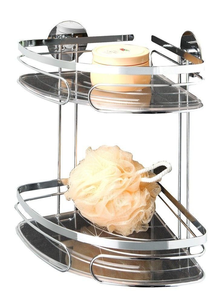 Turbo-Fix Eckbadezimmerregal 2 Ebenen der deutschen Marke WENKO ist ein tolles Angebot für jede Duschkabine. Wählen Sie ein sehr erfinderisches und äußerst praktisches Badezimmerregal! Solch ein Organizer wird es Ihnen viel einfacher machen, alltägliche Aktivitäten zu machen - machen Sie alle notwendigen Kosmetika und Badgeräte in Reichweite, was die Reinigung und Hygiene über der Badewanne oder Dusche verbessert. Schauen Sie sich die komplette Palette der Badezimmerregale in unserem Shop an Sie werden sicherlich etwas für Sie finden!
