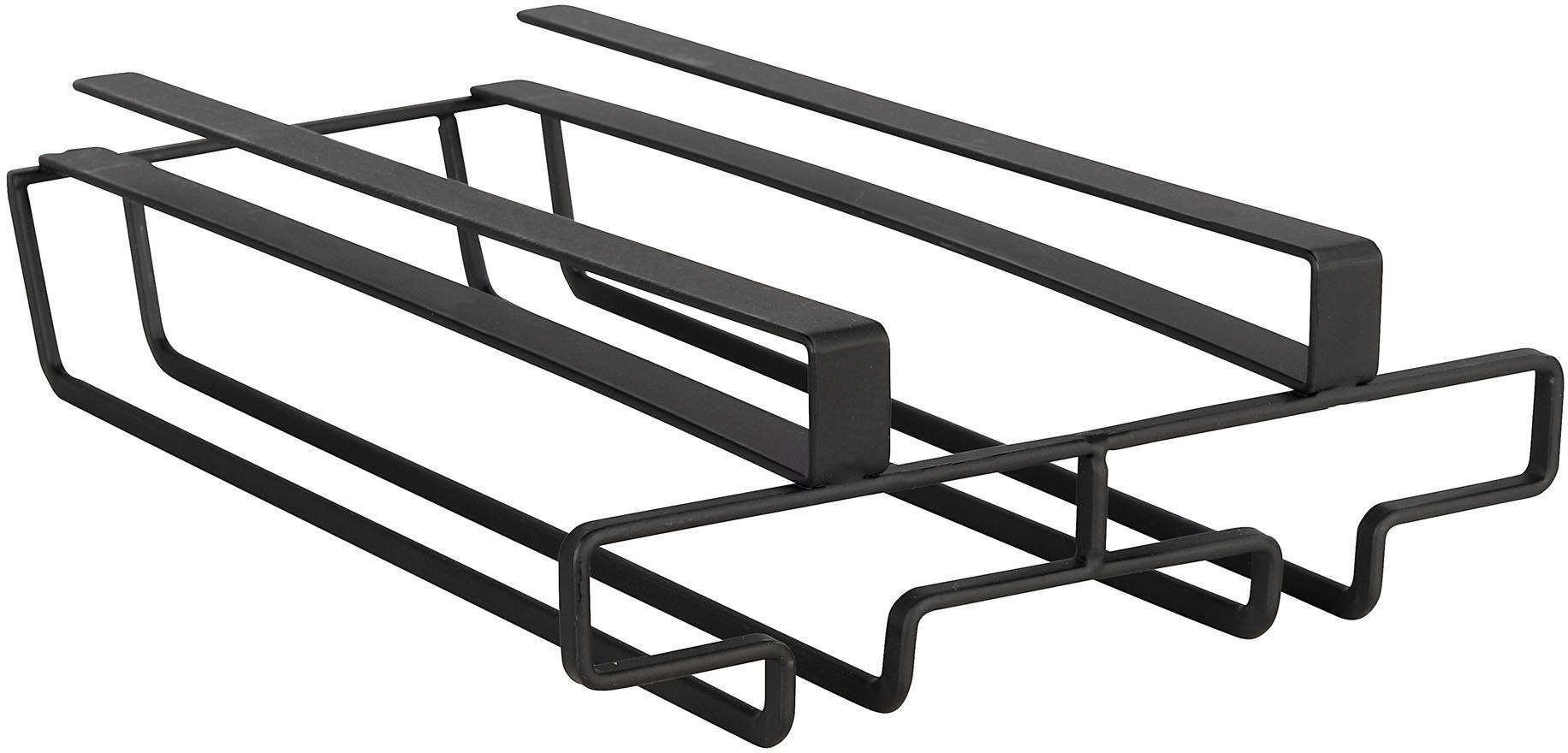 Wenn der Platz in der Küche knapp bemessen ist, ist der dekorative, schwarze Gläserhalter eine praktische Alternative, um möglichst viele sauber gespülte Wein-, Sekt- und Biergläser platzsparend und ordentlich im Schrank oder unter dem Regal unterzubringen. Bei Bedarf kann der Halter mit einem Griff wieder entnommen werden. Die Gläser werden einfach in die praktischen Gläserhalter geschoben. So werden bis zu 6 Gläser stets sicher und vor Staub geschützt aufbewahrt.