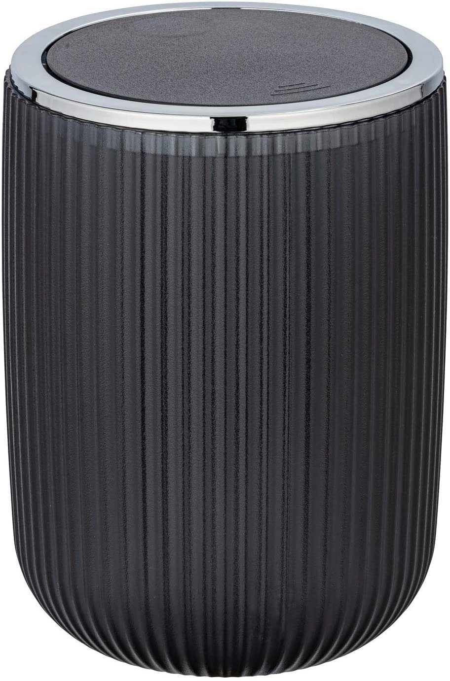 Mülleimer für Badezimmer AGROPOLI, 20 cm, grau, WENKO. Stilvoller Korb mit kippbarem Agropoli S Deckel in trendiger dunkelgrauer Farbe ist der perfekte Abfallbehälter im Bad und Gästetoilette. Praktisches Gadget: Der Korb verfügt über einen einfach zu bedienenden, angehobenen Deckel, der nicht nur diskret den Inhalt verbirgt, sondern auch Sauberkeit und Hygiene garantiert.