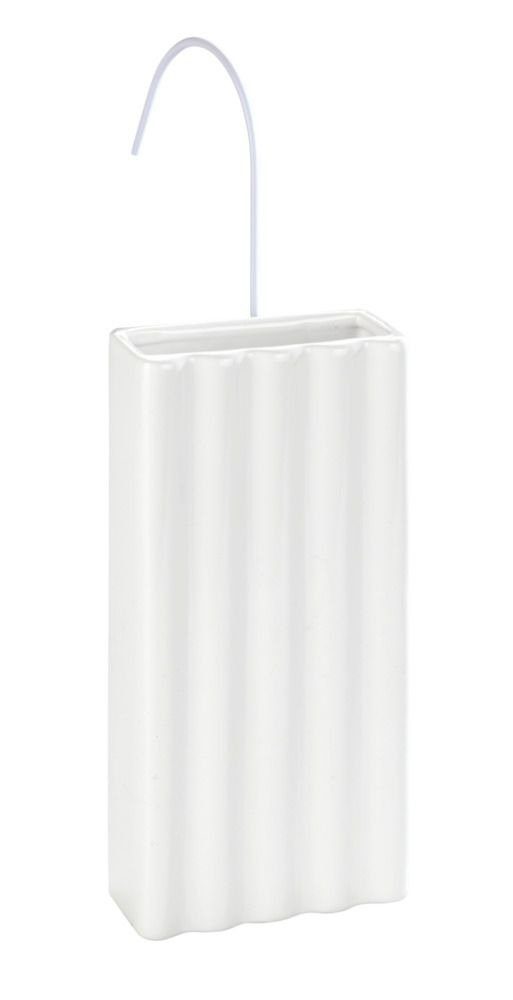 Der präsentierte Luftbefeuchter besteht aus weiß lackierter hochwertiger Keramik . Es hat dekorative Gürtel, die ihm einen modernen Charakter verleihen. Es hat eine universelle weiße Farbe, so dass es perfekt zu jeder Inneneinrichtung und jedem Farbschema passt. Darüber hinaus wurde es mit einem Metallhaken ausgestattet, der es ermöglicht, am Kühler zu hängen. Es ist für alle handelsüblichen Heizkörper konzipiert.