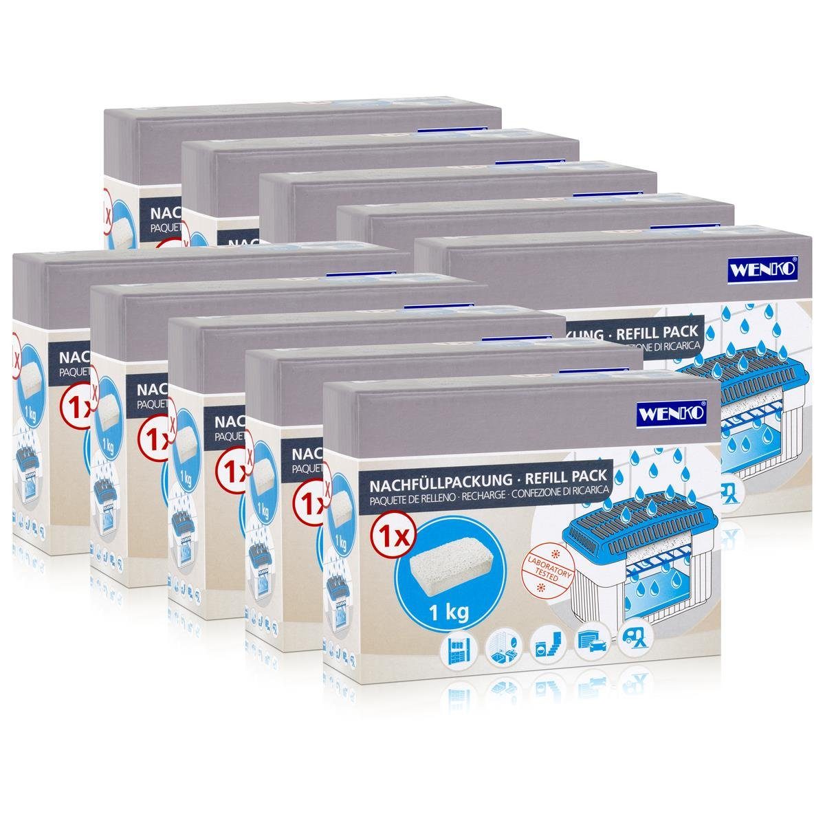 Das Wenko Luftentfeuchter Granulat kommt als Nachfüllpack mit 1 kg Granulat. Zur Nutzung des Nachfüllpacks benötigen Sie einen Wenko Luftentfeuchter, den Sie in unterschiedlichen Größen und Designs bei uns im Shop finden können. Das Luftentfeuchter Granulat Nachfüllpack ist für große Räume bis 50 m² ausgelegt. Aber auch in kleineren Räumlichkeiten wie dem Bad oder der Waschküche können Sie es platzieren. Es schützt aktiv Ihre Wände, Möbel und Textilien vor überschüssiger Feuchtigkeit. Dabei arbeitet der Feuchtigkeitskiller geräuschlos und ohne Stromverbrauch in laborgeprüfter Qualität. Die biologisch-chemischen Inhaltsstoffe des Wenko Luftentfeuchter Granulats sind geruchsneutral und verhalten sich ähnlich wie z. B. das natürliche Trocknungsmittel Meersalz.