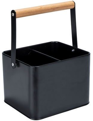 Der Utensilienkorb Baco von WENKO ist der ideale Platz für Saucen und Getränke am Grill und auf dem Tisch. Der Tragekorb aus pulverbeschichtetem Metall in Schwarz ist mit einem flexiblen Holz-Tragegriff ausgestattet. So können Sie die Soßen bequem von einem Ort zum anderen transportieren oder am Tisch handlich weiterreichen.