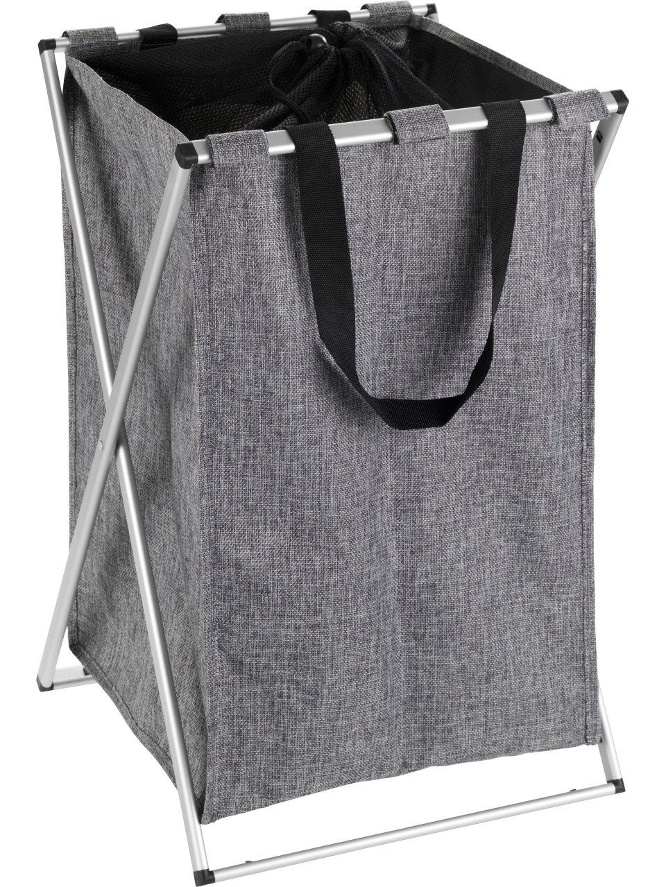Der moderne Wäschesammler Uno bringt mit seiner grau-melierte Farbgebung Stil und Trend ins Bade- oder Schlafzimmer. Mit seinen 52 Litern Fassungsvermögen bietet er dekorativen Platz für die Wäsche bis zum nächsten Waschgang. Der Wäschekorb ist aus hochwertigem, strapazierfähigem Polyestergewebe gefertigt. Die stabilen Trageriemen eignen sich zum bequemen Transport der Wäsche. Der praktische Sichtschutz mit Zugband-Verschluss verhindert das Rausfallen der Kleidungsstücke. In seinem leichten, stabilen Aluminium-Gestell steht der Korb stets sicher an gewünschter Stelle. Bei Nichtgebrauch kann der Sammler zusammengefaltet und platzsparend aufbewahrt werden.