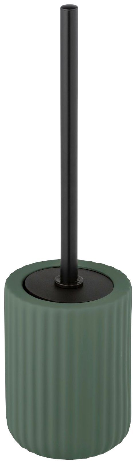 Die moderne Badserie Belluno in gedeckten und kräftigen Farben setzt auf ein harmonisches Zusammenspiel von Optik, Haptik und Funktionalität. In dunklem, angesagtem Graugrün gehalten und mit einer aufwendig strukturierten Oberfläche versehen, können Sie mit der Bad-Accessoires Serie Belluno in jedem Badezimmer und Gäste-WC auftrumpfen. Das Zusammenspiel der gleichbleibenden, vertikalen Rillen - in Verbindung mit den verführerischen Rundungen des Produktes - verleihen der imponierenden WC-Garnitur das gewisse Etwas. Das attraktive Zubehör der aufeinander abgestimmten Bad-Serie ist aus hochwertiger Keramik gefertigt. Der stilvolle, geschlossene Bürstenhalter in mattiertem Graugrün überzeugt mit einer griffigen Soft-Touch Beschichtung sowie seiner komfortablen Abmessung von Ø 11,5 x 42 cm. Der Keramikbehälter schließt mit einer flexiblen Kunststoffabdeckung in schwarz unterhalb des Griffes ab und schützt so vor Blicken. Der schwarze Stiel der charmanten Toilettenbürste ist aus robustem, rostfreiem Edelstahl gefertigt. Die flexible Platzierung der außergewöhnlichen Standgarnitur im Badezimmer garantiert einen anwenderfreundlichen Gebrauch. Durch ihre strapazierfähigen Borsten aus Kunststoff gewährleistet die Bürste eine stets zuverlässige Nutzung. Die im Lieferumfang enthaltene WC-Bürste ist mit einem schwarzen, auswechselbaren Bürstenkopf von Ø 7,5 cm versehen. Nach Verschleiß lässt sich dieser kinderleicht austauschen und mit dem passenden Bürstenaufsatz von WENKO ersetzen. So haben Sie lange Freude mit Ihrem Produkt!