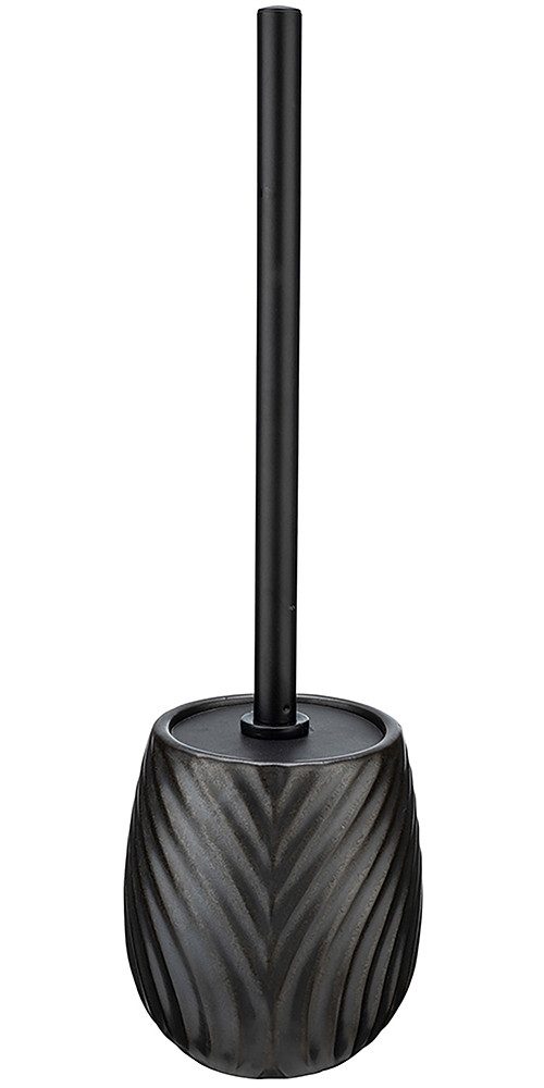 Die anthrazitfarbene WC-Garnitur der Serie Idro setzt mit ihrer vornehmen Gestaltung einen extravaganten Akzent in Ihrem Badezimmer, Maße (B/T x H): Ø 10 x 39 cm. Der Stiel der WC-Bürste und die flexible Kunststoffabdeckung, die den Bürstenhalter verschließt, sind in tiefem Schwarz gehalten, wodurch sie sich nahtlos in das ansprechende Design der Serie einfügen. Dieses Detail bereichert nicht nur die Ästhetik, sondern betont auch die durchdachte Noblesse von Idro – eine faszinierende Aura, die selbst im Badezimmer spürbar ist.