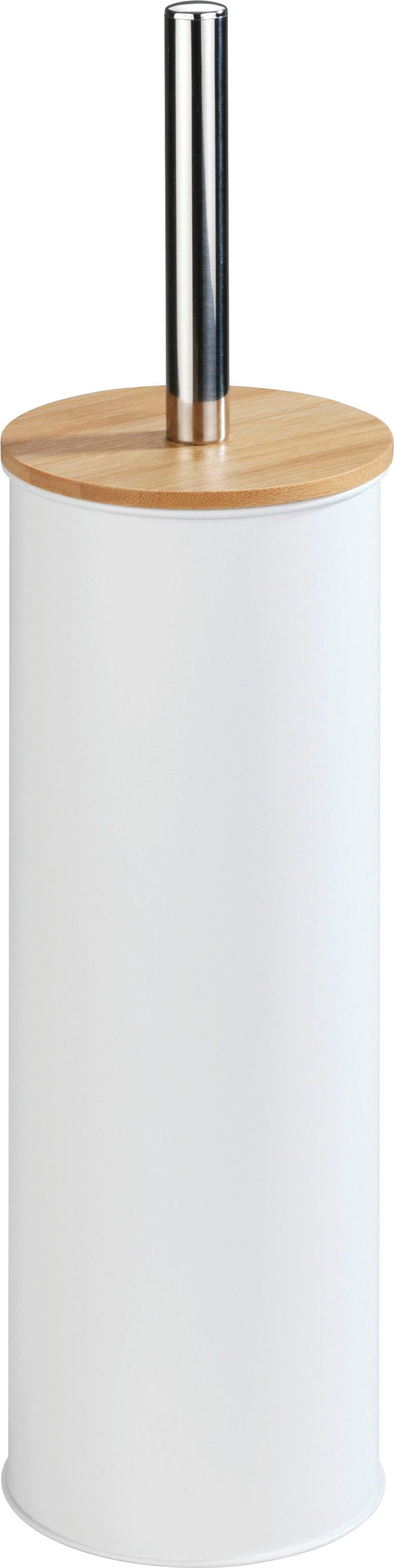 Die Bad-Serie Tortona aus hochwertigem, lackiertem Stahl in Weiß matt, kombiniert mit Bambus, ist ein optisches Highlight in jedem Badezimmer und Gäste-WC. Durch die WC-Garnitur in schlichtem Weiß und dem darauf abgestimmten Bambusdeckel schaffen Sie ein natürliches Ambiente in Ihrem Bad. Mit der WC-Garnitur Tortona wird das Badezimmer nicht nur optisch aufgewertet, sondern sie ist zudem auch immer an gewünschter Stelle griffbereit. Durch ihre geschlossene Form dringen weder Gerüche nach außen noch ist die WC-Bürste direkt sichtbar. Die dazugehörige WC-Bürste hat einen auswechselbaren, schwarzen Bürstenkopf von Ø 7,5 cm. Mit dieser praktischen WC-Bürste kann das WC gründlich gereinigt werden. Die Bürste gewährleistet durch ihre strapazier- und anpassungsfähigen Borsten eine zuverlässige Nutzung. Ergänzend zu der schönen WC-Garnitur bietet WENKO weitere passende Accessoires aus der Serie Tortona an.