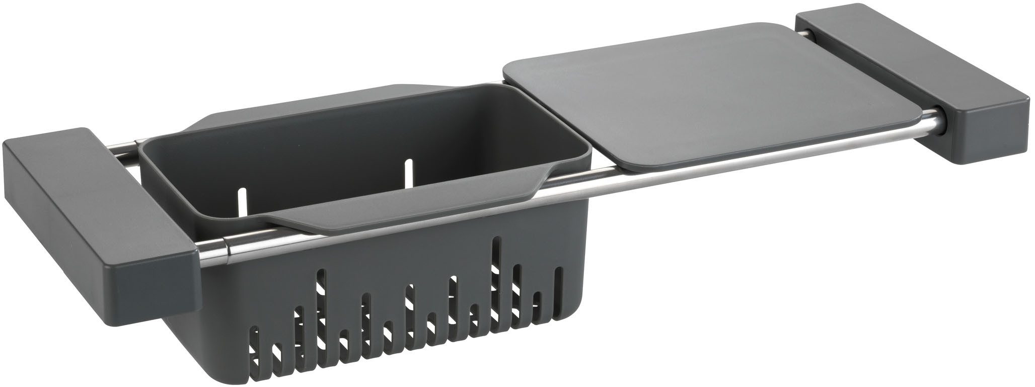 Kann als Abtropfer für Spülutensilien, Sieb und Schneidebrett verwendet werden