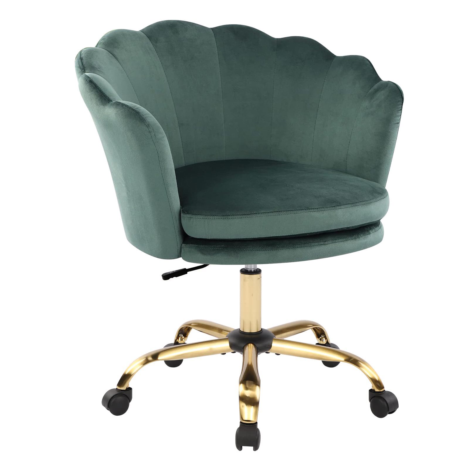 Der samtige Stoffbezug sorgt für ein luxuriöses Sitzgefühl und verleiht dem Stuhl einen eleganten, modernen Look. Der Sitz ist mit hochdichten Schwämmen gepolstert, die eine ausgezeichnete Druckentlastung bieten und langfristigen Sitzkomfort garantieren. Der stabile Metallrahmen gewährleistet eine hohe Langlebigkeit und Robustheit, während die Nylon-Lenkrollen für ein sanftes Gleiten auf verschiedenen Bodenbelägen sorgen, ohne Kratzer zu hinterlassen.