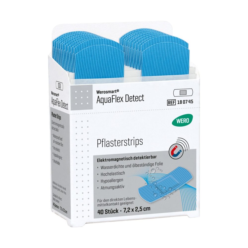 Das Vielseitige überzeugt durch eine wasserdichte und ölbeständige Folie, ist elektronisch detektierbar und somit bestens geeignet für die Lebensmittelindustrie. Aufgrund der wasserabweisenden Wirkung kommen unsere Werosmart® AquaFlex Detect häufig an feuchten Arbeitsbereichen zum Einsatz. Все Werosmart® Sofortpflaster sind mit sichtbaren Farben und Piktogrammen gekennzeichnet, um die Pflasterform und -qualität, auch bei geschlossener Box, sofort zu erkennen.