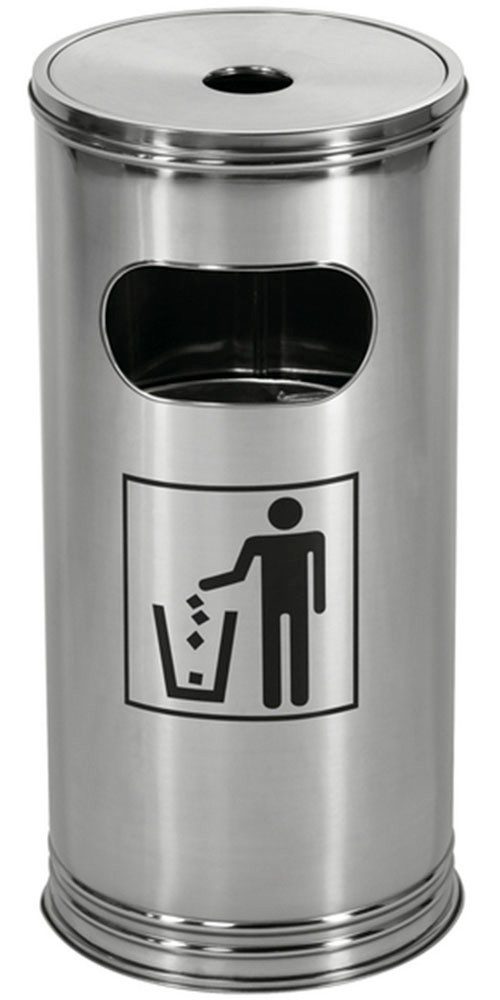 Lieferumfang | 1x WESCO Standascher mit 15 Liter Volumen in der Farbe Edelstahl, Einwurfschlitz mit abnehmbarer Ascherschale, inkl. Metalleinsatz |