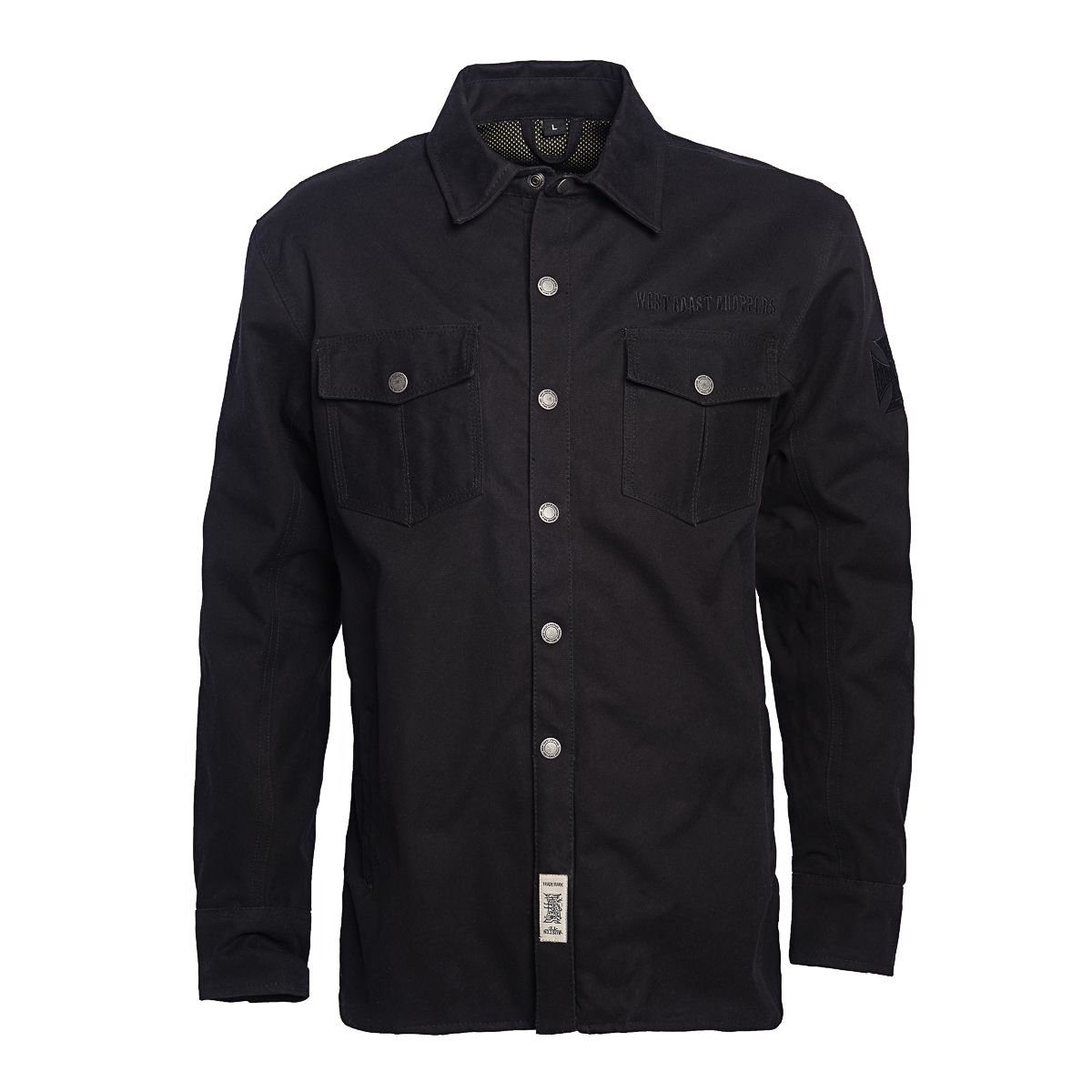 Original WCC Motorrad Hemd mit einer vollflächigen Aramid Schicht. Diese Extraschicht ist aus hochwertigem, zertifizierten Aramid. Dies ist besonders reißfest und abriebssicher, dadurch schützt es die Haut beim ungewollten Kontakt mit dem Asphalt beim Motorradfahren. Nur durch diese hochwertigen Materialien kann man sich beim Motorradfahren schützen. Darüber hinaus kann man bei diesem Hemd/Jacke von West Coast Choppers Protektoren an Ellbogen, Schultern und Rücken einsetzen. Hierfür sind Protektoren Taschen eingenäht. Dies schützt die Knochen bei einem Unfall. Die Entwickler der Marke West Coast Choppers haben ein Funktionsmaterial bei dem Hemd verarbeitet, dass atmungsaktiv und zugleich Wasserabweisend ist. Ideal für warme Bikertage und gleichzeitig ist man für einen Regenschauer auch noch geschützt und bleibt trocken. Das Hemd hat zwei Innentaschen, der Front Reißverschluss ist mit hochwertigen YKK Zipper versehen und die Verarbeitung ist sehr hochwendig, dank der 3-Fach Nähte.