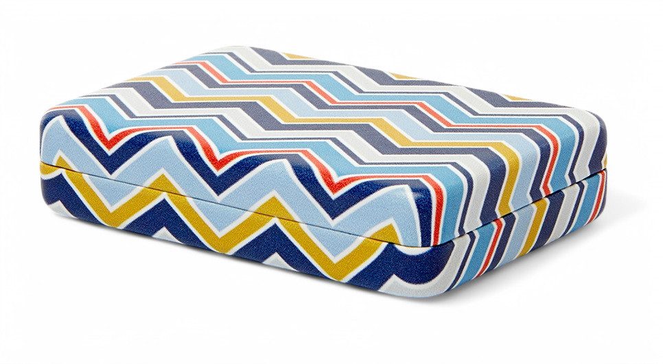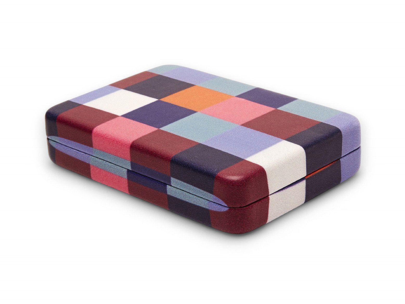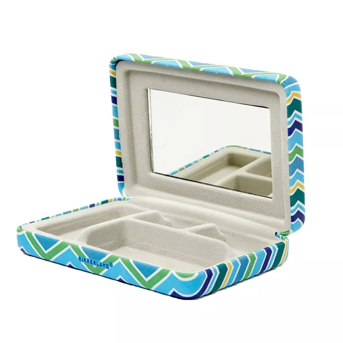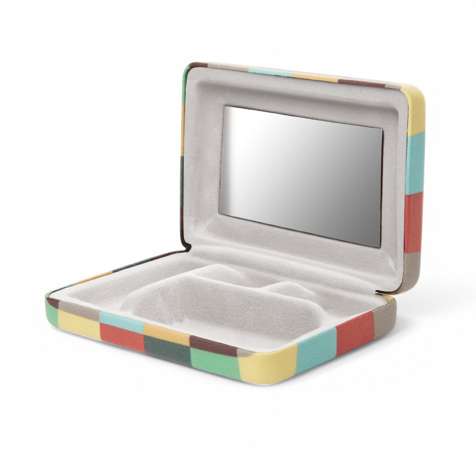 Das kompakte, farbenfrohe Schmuckkästchen mit buntem Karomuster bietet eine stilvolle Aufbewahrung für Schmuck und Accessoires. Das samtgefütterte Hartschalenetui passt perfekt in die Handtasche und ist ideal für zu Hause, im Bad oder auf Reisen. Das kleine Etui verfügt über einen Spiegel inklusive vier praktischen Fächern.