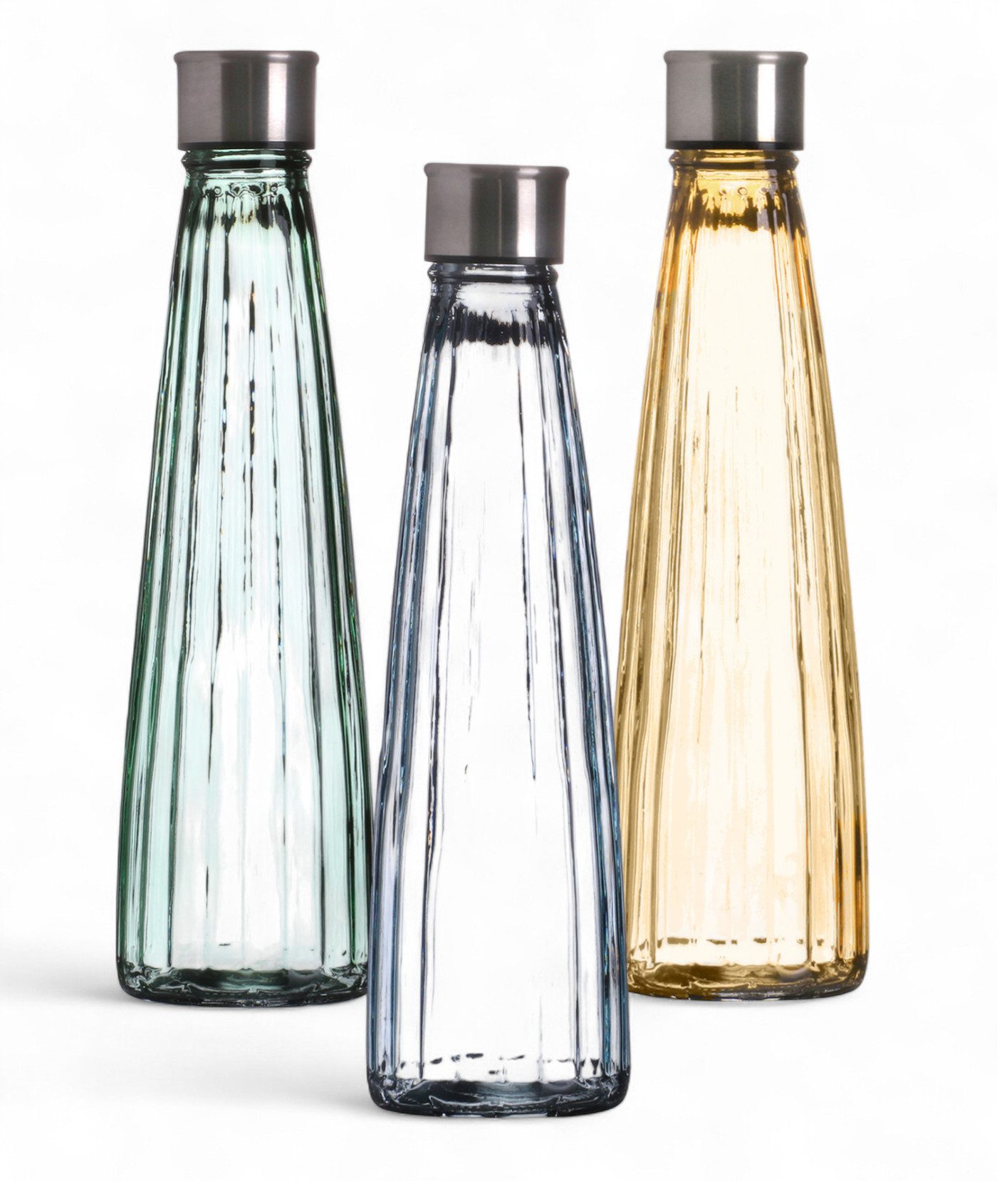 Entdecke die stilvollen Glas-Wasserflaschen von Westcraft in hochwertigem Design und brillanten Pastellfarben. Die Flaschen fassen 750 ml und sind perfekt geeignet für Wasser, Säfte, Tee, Cold Brew oder als dekorative Vase.