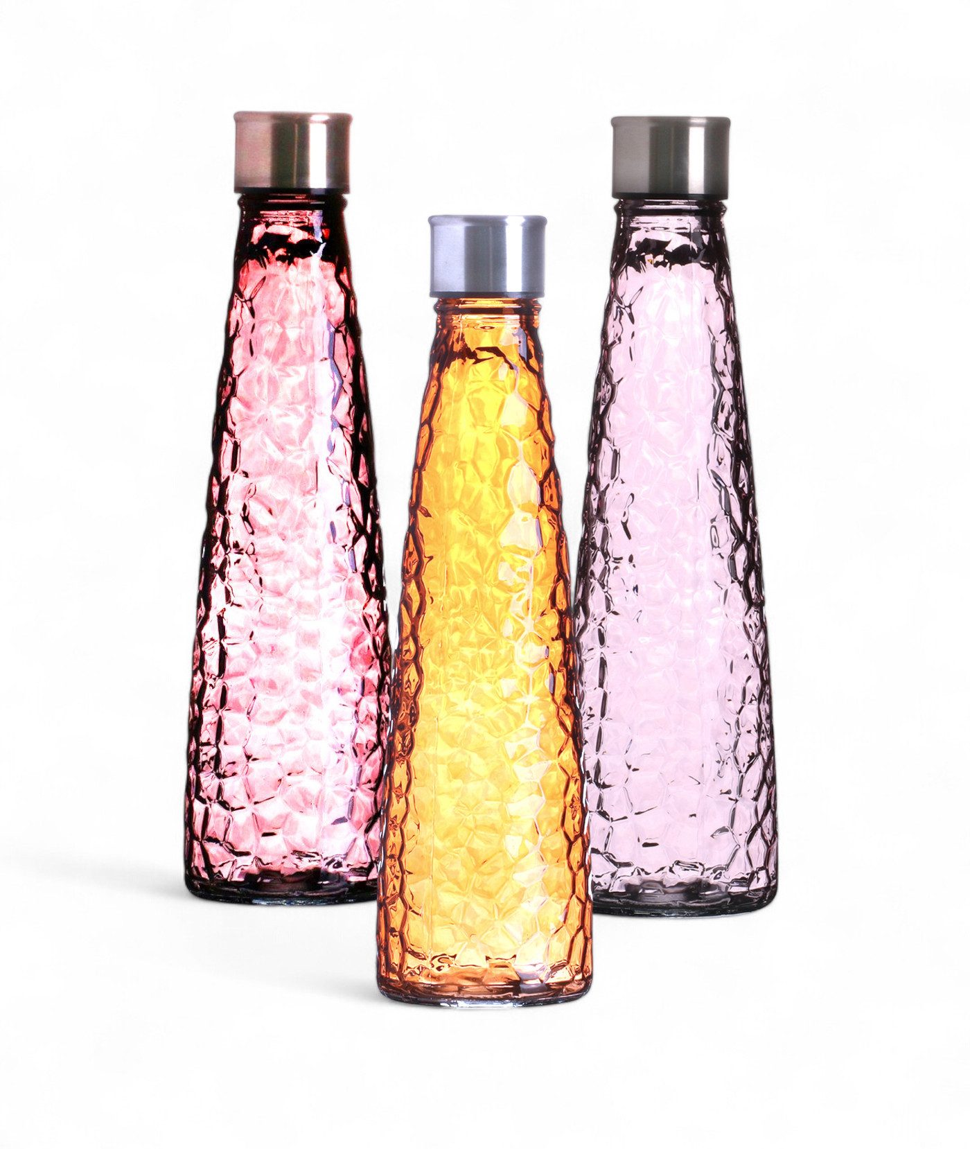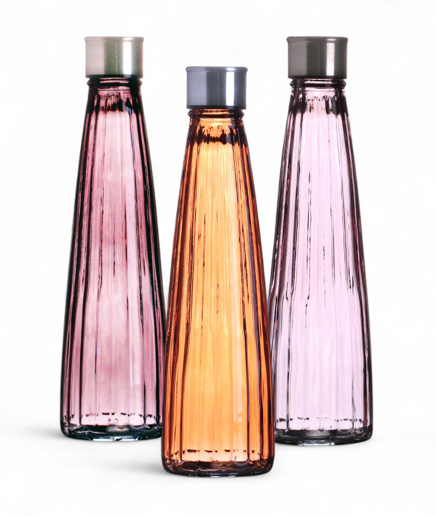 Wasserkaraffe Vintage Glas-Wasserflasche 750ml – Diamant oder Linear – Pastellfarben