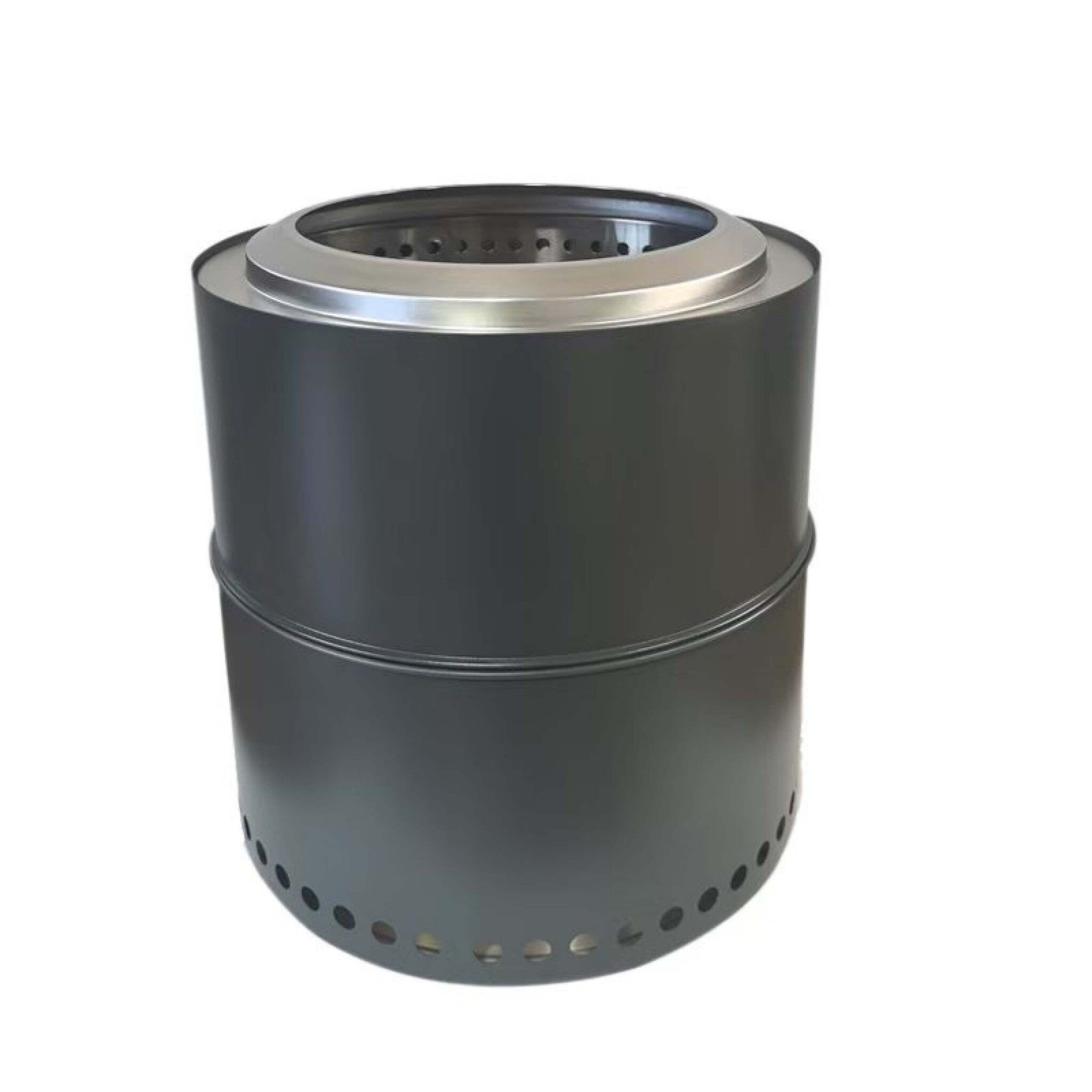die Feuerstelle besteht aus einem unteren Ring mit Öffnungen, einem weiteren doppelwandigen Aufsatz sowie einen Einsatz für die Brennmaterialien
