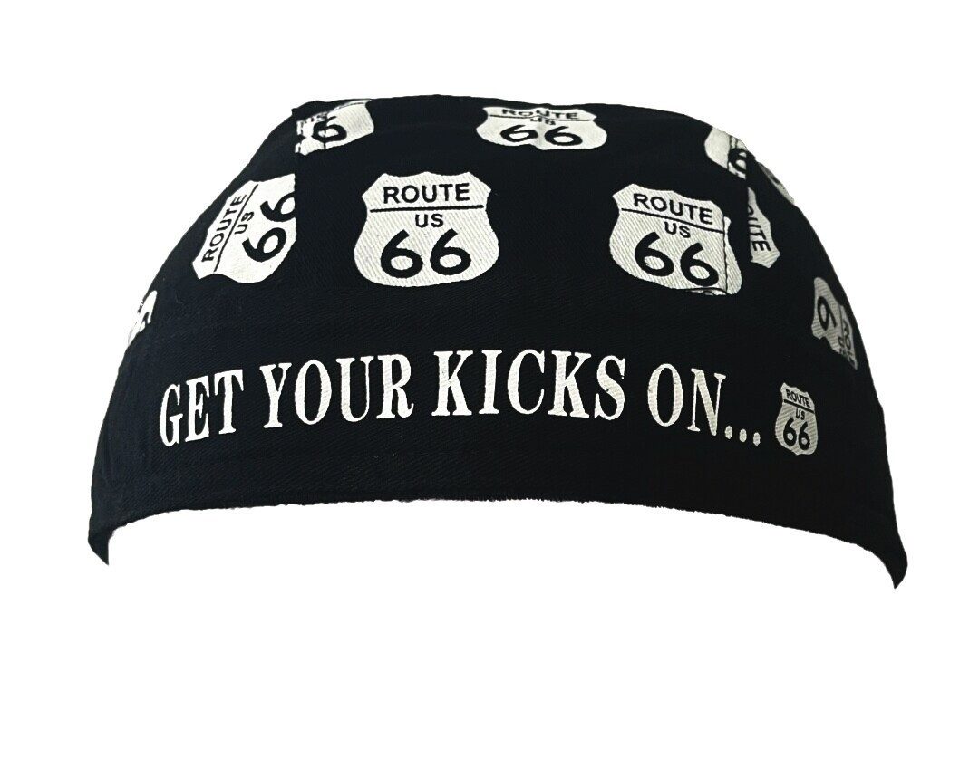 Route 66 Bandana Cap – „Get Your Kicks On...” Kultiges Kopftuch mit Route-66-Motiv und dem legendären Schriftzug – ein Muss für alle Biker, USA-Fans und Roadtrip-Liebhaber. Gefertigt aus 100 % Baumwolle – angenehm, atmungsaktiv und pflegeleicht. Mit innenliegendem Schweißband – für optimalen Komfort auch bei Hitze oder unter dem Helm. Zum Binden – passt sich flexibel an jede Kopfform an. Perfekt für Motorrad, Freizeit, Festivals oder Werkstatt. Ein Klassiker im US-Retro-Stil – praktisch, stylisch und funktional! Die Einheitsgröße passt sich verschiedenen Kopfgrößen an. Das Kopftuch ist pflegeleicht und kann bei 30°C gewaschen werden. Ein Must-have für alle, die den Biker Style lieben.