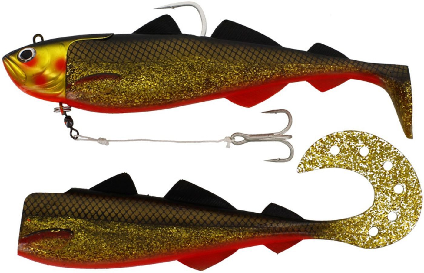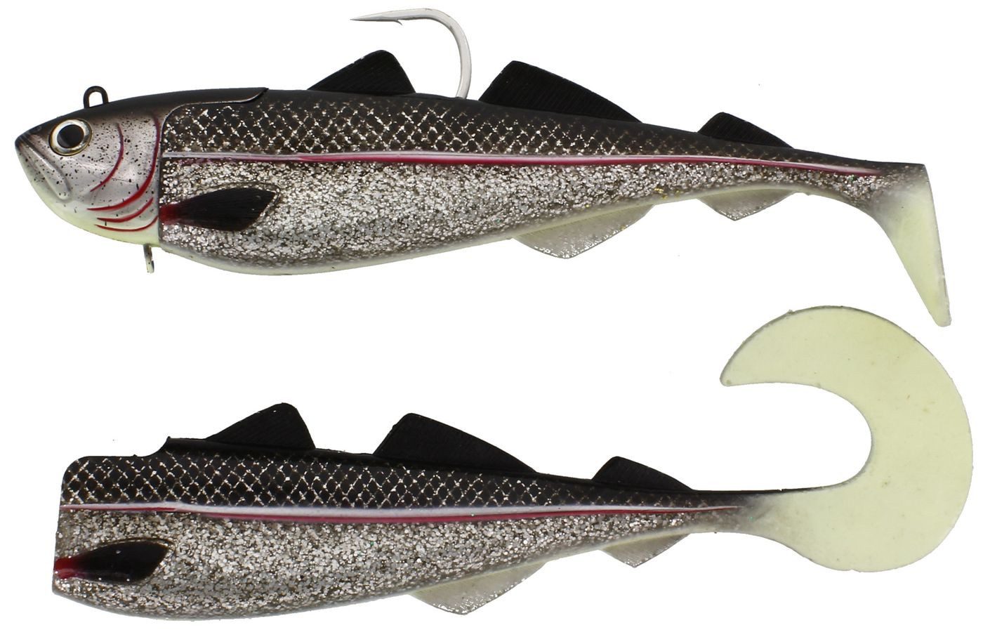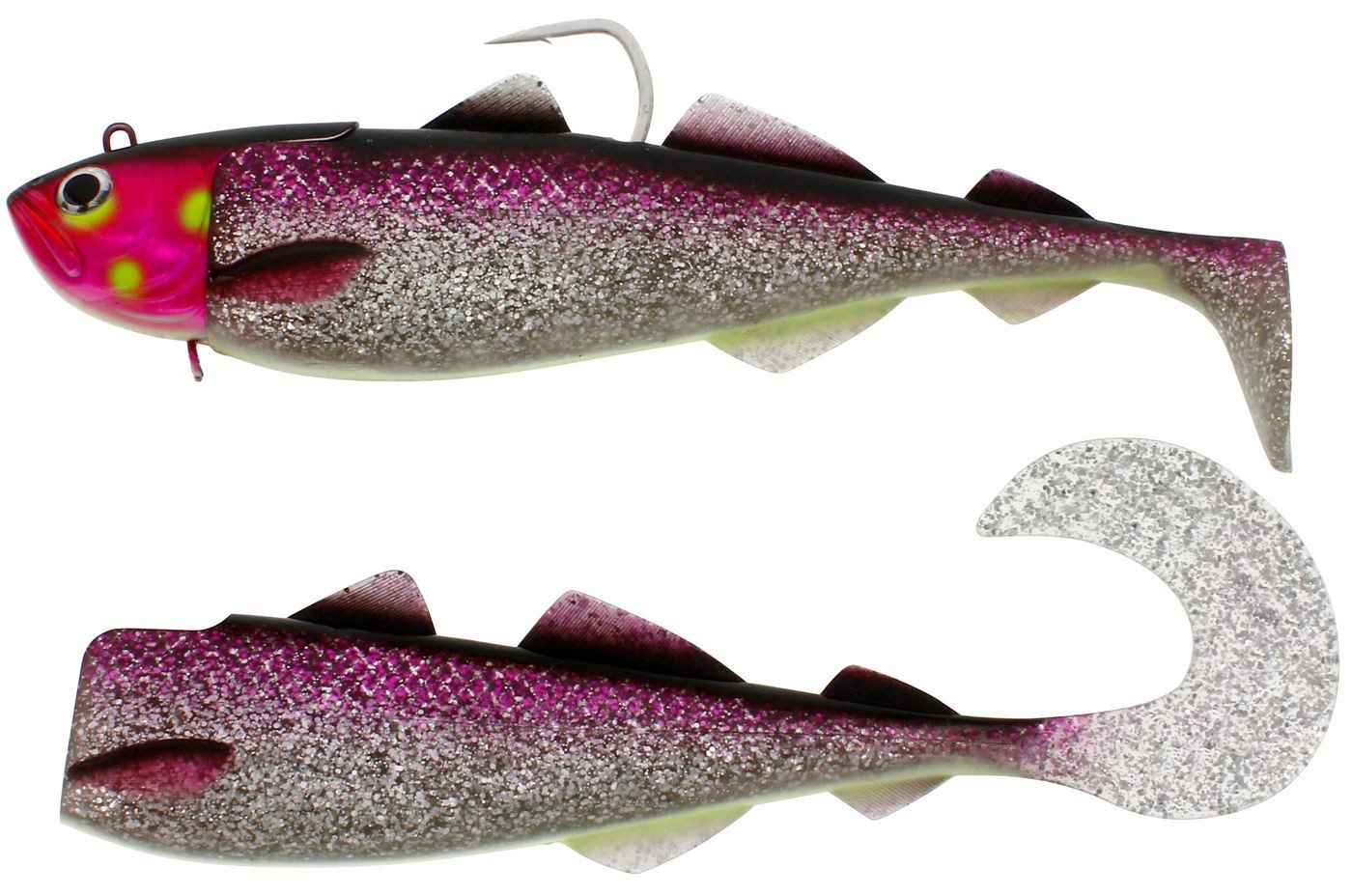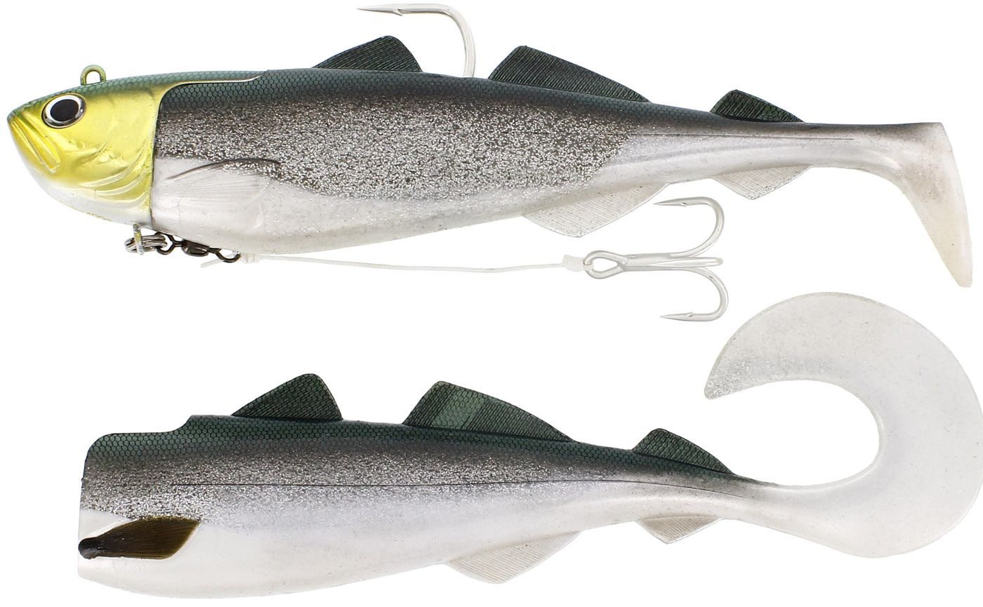 Westin Crazy Daisy - Gummiköder - Die Meeresköder von Westin wurden zum Hochseeangeln entwickelt und sie lassen sich sehr gut zum Pilken sowie Jiggen auf Heilbutt, Dorsch und andere Meeresfische einsetzen. Das Laufverhalten des Meeresshads ist auch bei langsamer Einholgeschwindigkeit sehr natürlich und erinnert an einen jungen Seelachs. Dieser gehört für viele Meeresraubfische in Norwegen und Island zur Lieblingsspeise. Der Lieferumfang umfasst zwei unterschiedliche Gummiköder und einen Bleikopf. Der eine Gummikörper weist einen Jigschwanz auf, der auch bei sehr langsamen Tempo einen weichen, schlängelnden Köderlauf erreicht. Wird der Körper mit Schaufelschwanz montiert, läuft der Kunstköder wie ein panischer, verwundeter Fisch.