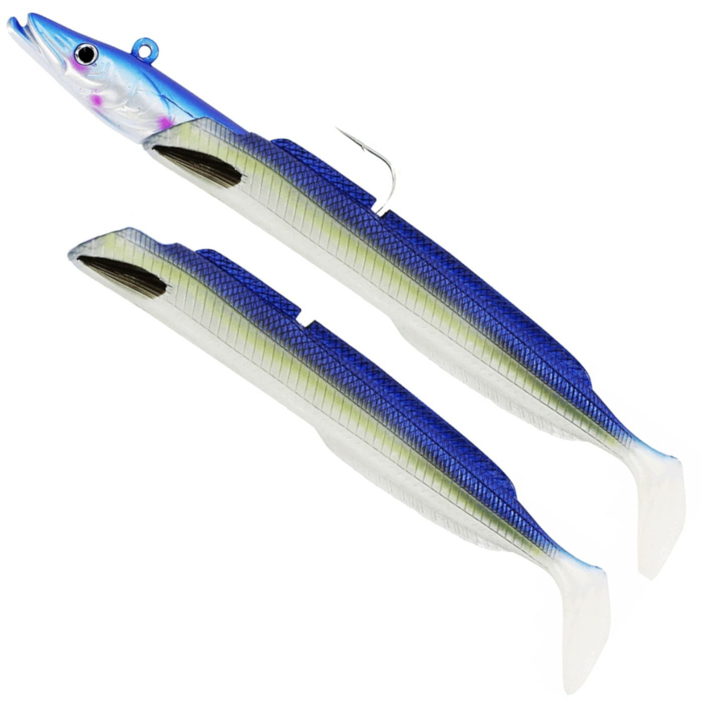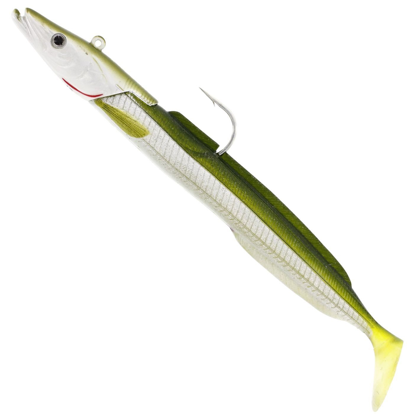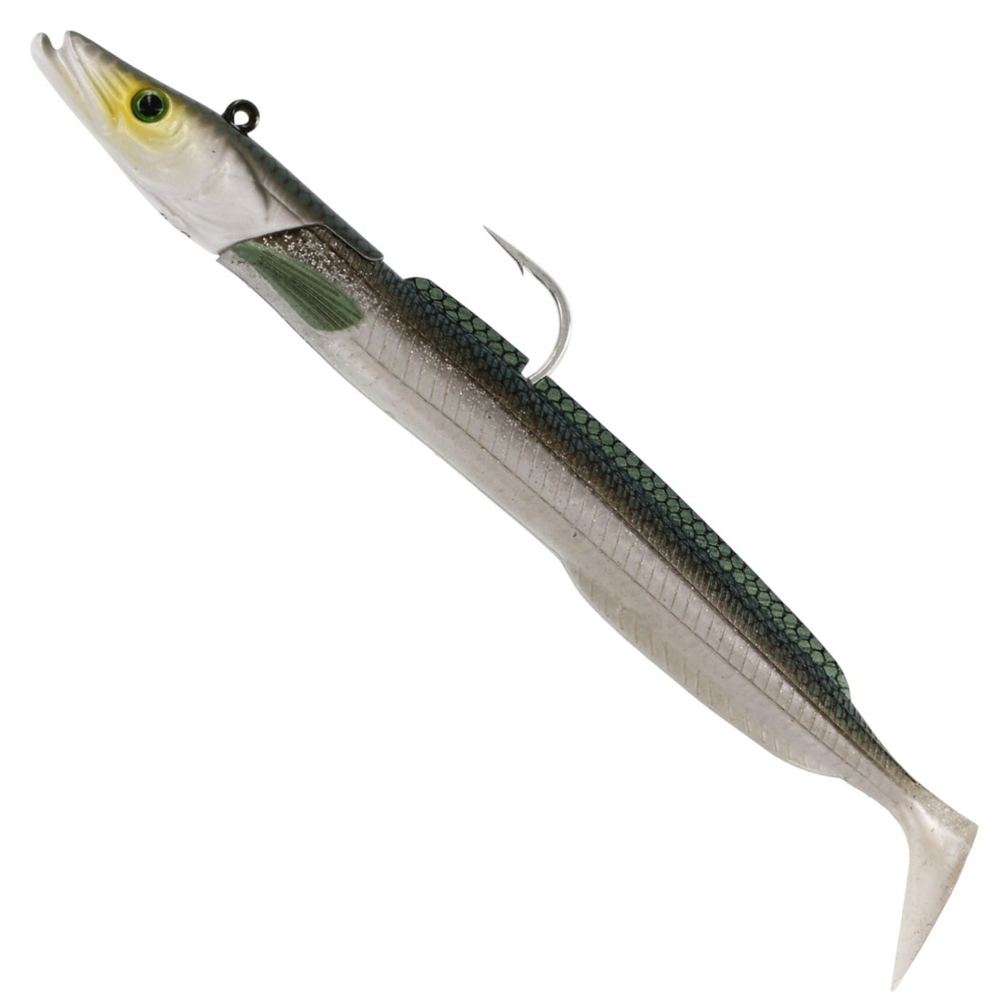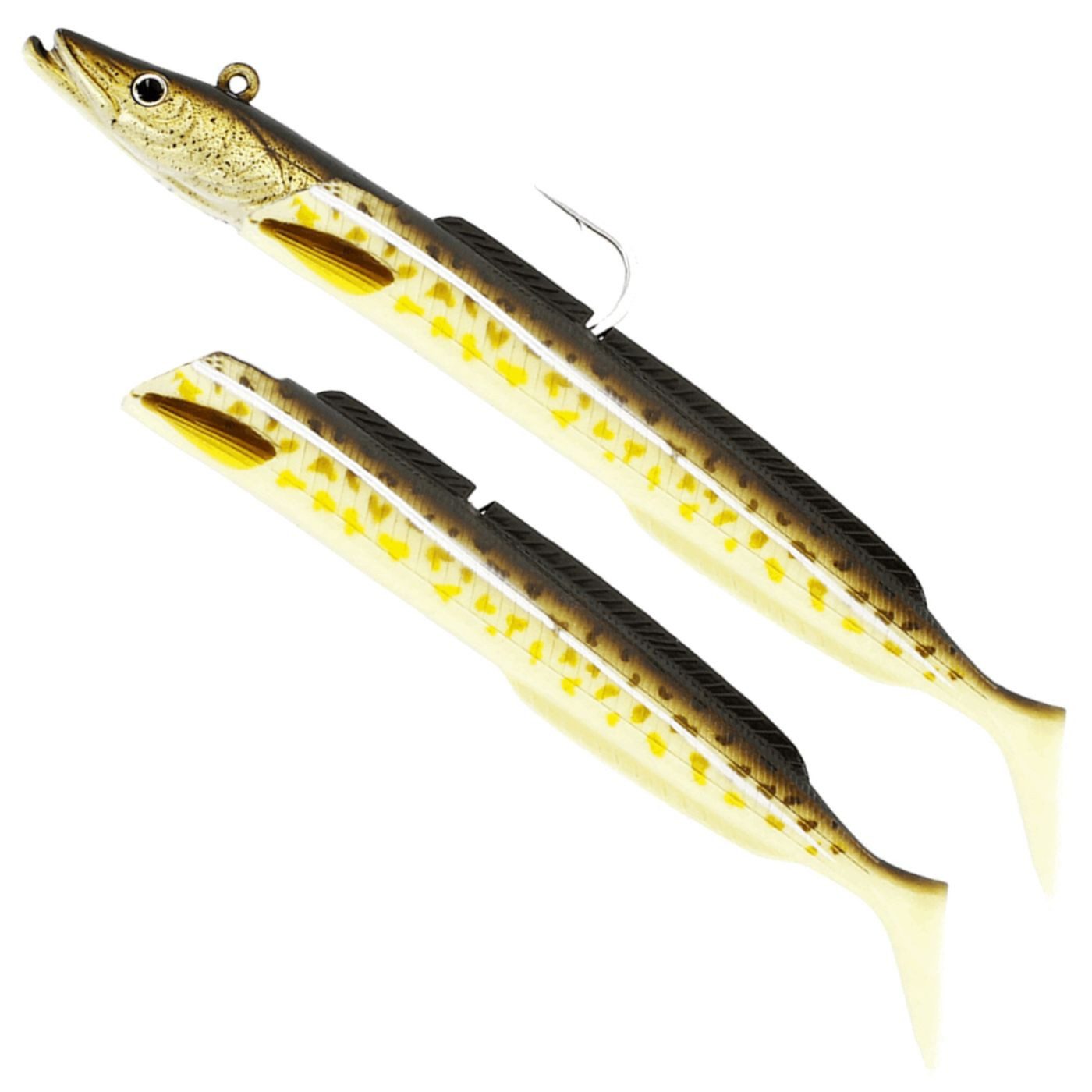 Westin 122g 22cm Sandy Andy Jig - 1 Jigkopf + 2 Gummifische- Der Gummiköder von Westin ist ein handbemalter Köder ist und stellt eine Kopie eines Sandaals dar. Der Jigkopf hat die Form eines Fischkopfes und der verwendete Meereshaken ist superscharf. Der robuste Körper kann ausgetauscht werden. Die Farbpalette umfasst eine große Auswahl an natürlichen und Schockfarben.