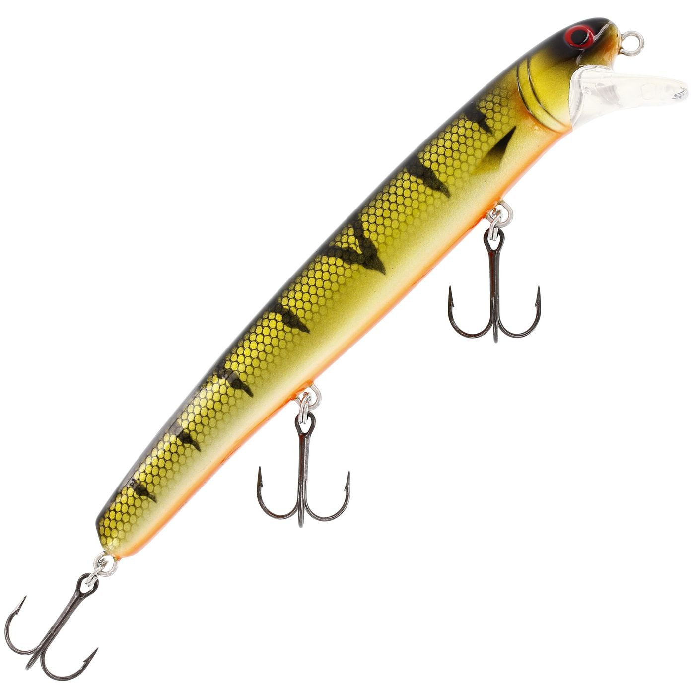 Westin Jätte Floating - Wobbler - Der Kunstköder von Westin besitzt ein sehr attraktives Laufverhalten, indem er um seine Achse rollt und dabei immer wieder die Flanken aufblitzen lässt, wodurch er sich sehr gut zum Schleppfischen und Wurfangeln auf Hechte eignet. Mit einer Lauftiefe von zwei bis vier Metern bietet sich der Hechtwobbler für unterschiedliche Einsatzbereiche beim Hechtangeln an, denn er kann teilweise in Ufernähe und an Kantenbereichen bis hin zum Spinnfischen auf Freiwasserhechte eingesetzt werden. Der Hechtköder ist mit einer robusten Drahtkonstruktion zwischen Befestigungsöse und Raubfischhaken versehen, so dass kapitale Großhechte problemlos ausgedrillt und gelandet werden können.